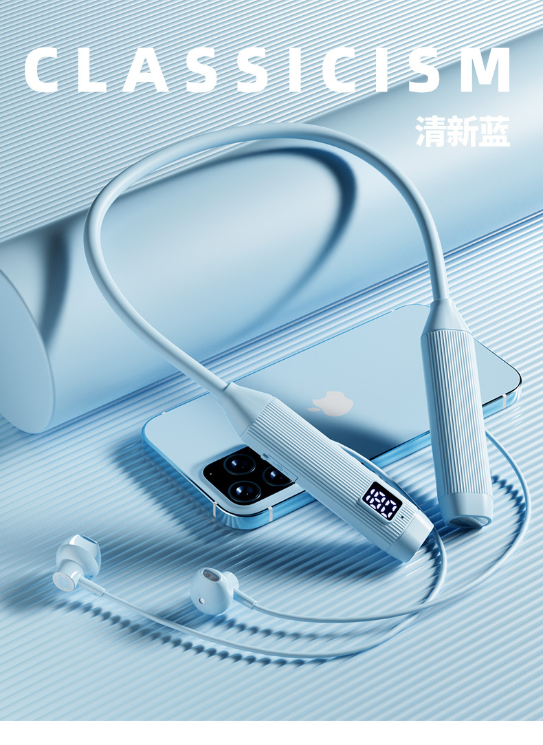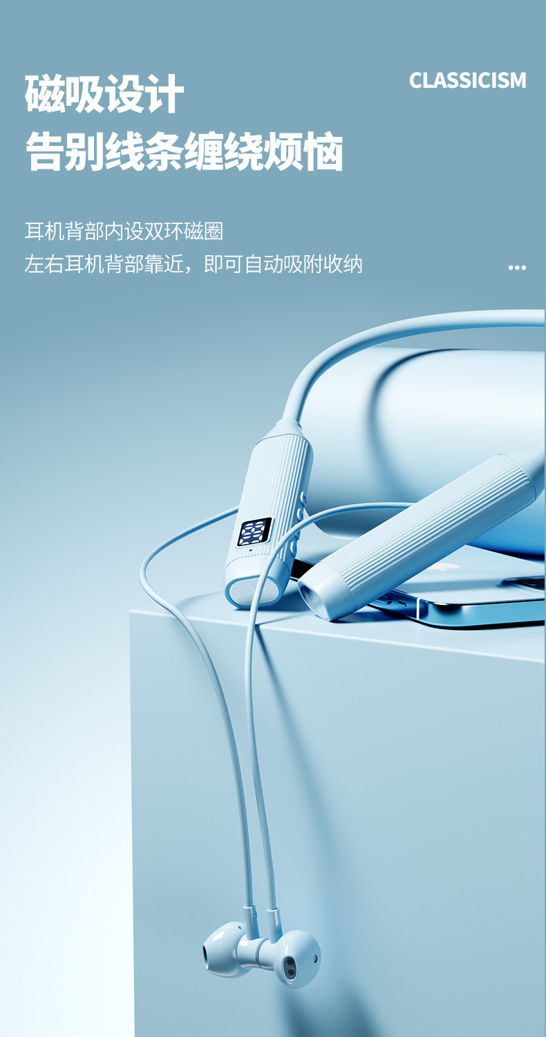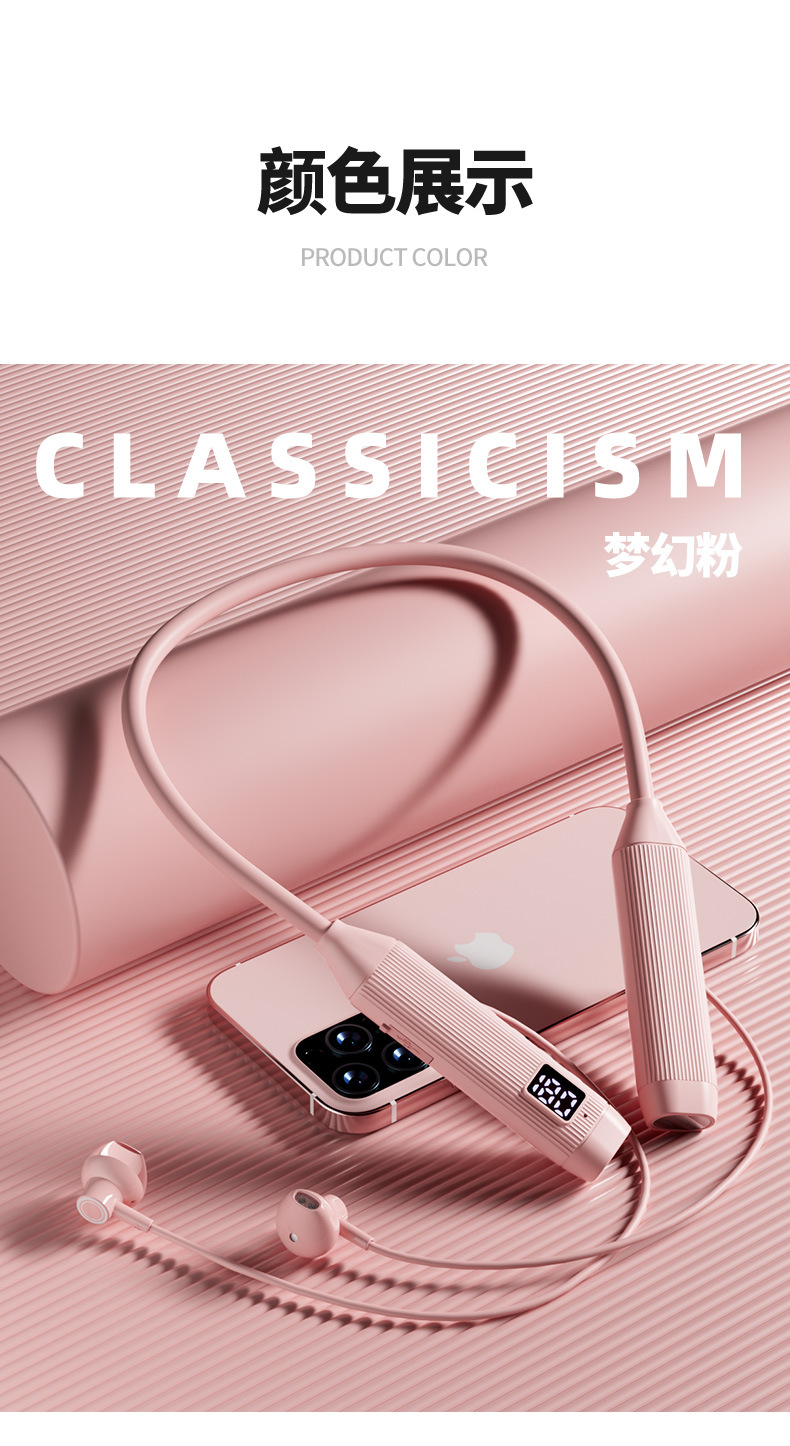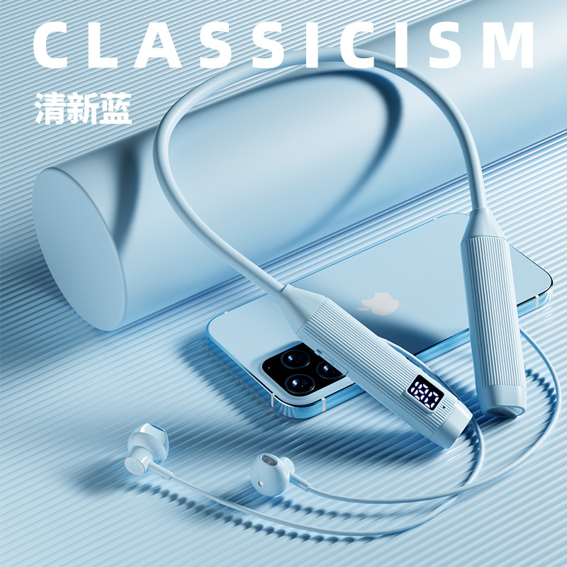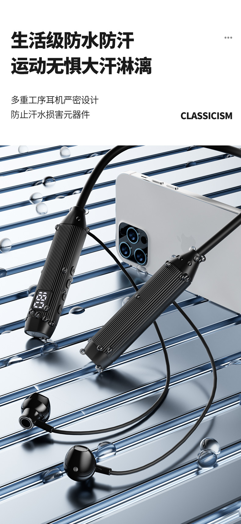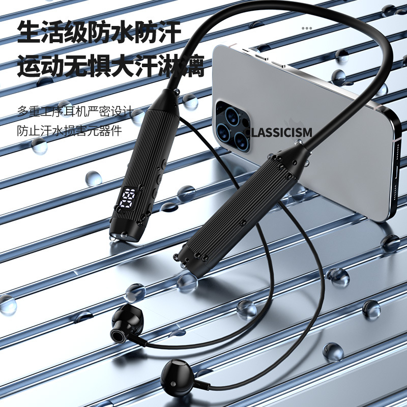 新款数显蓝牙无线耳机挂脖运动双耳入耳颈挂式超长待机续航批发