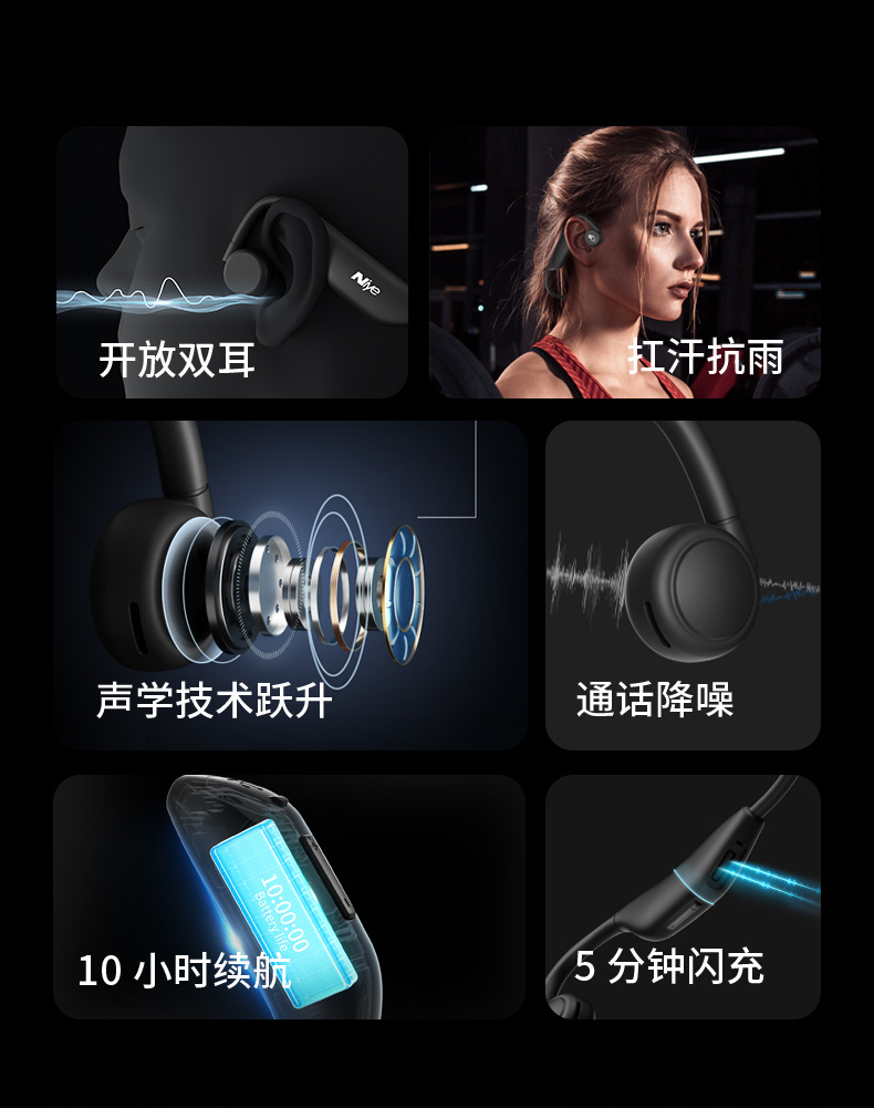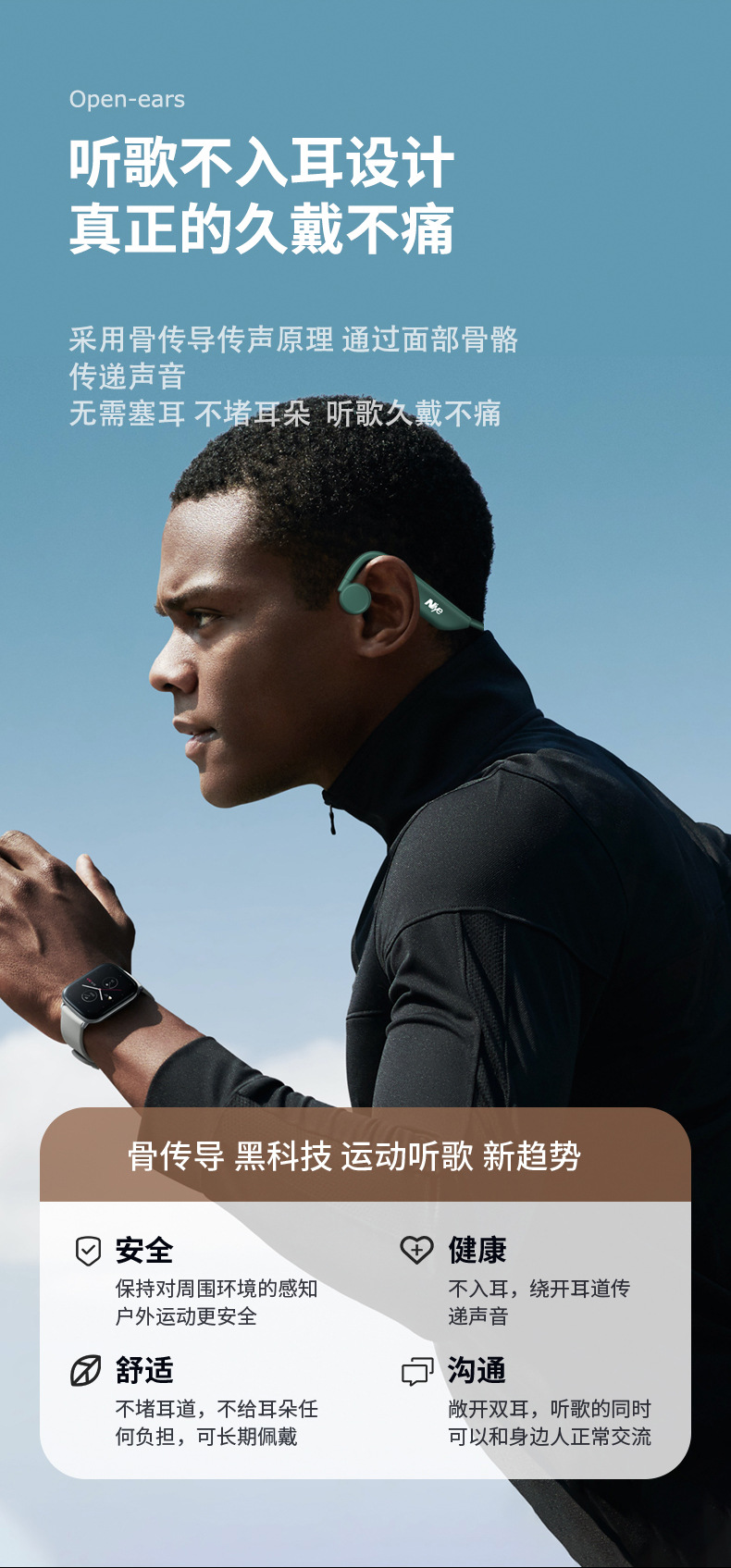 骨传导蓝牙耳机无线运动不入耳无痛骨传感挂脖式跑步运动专用