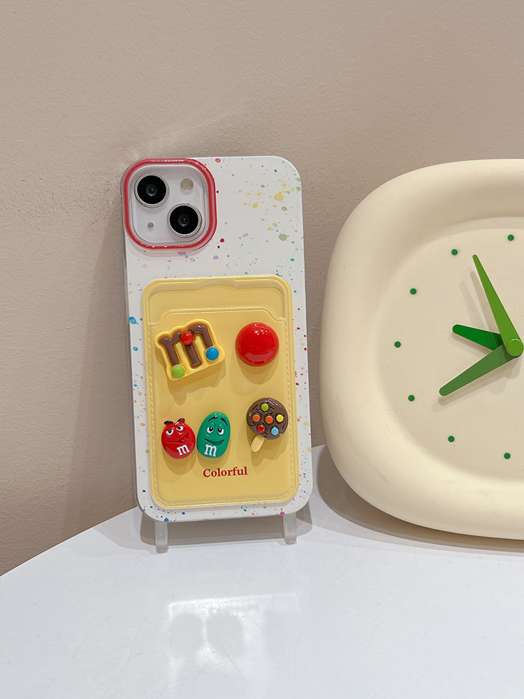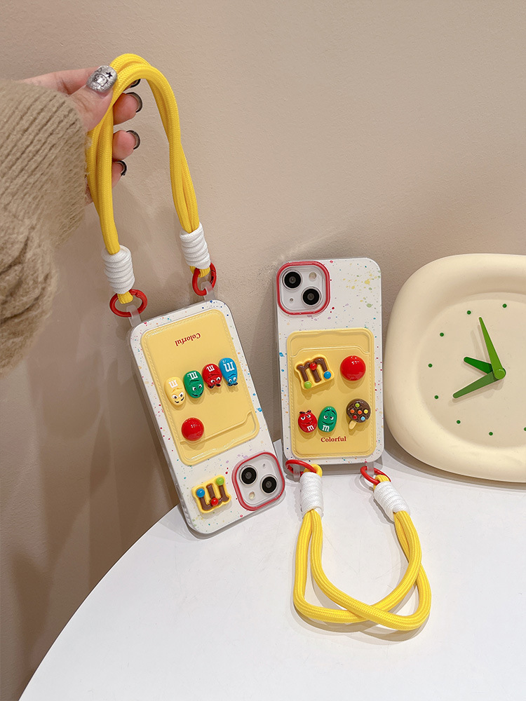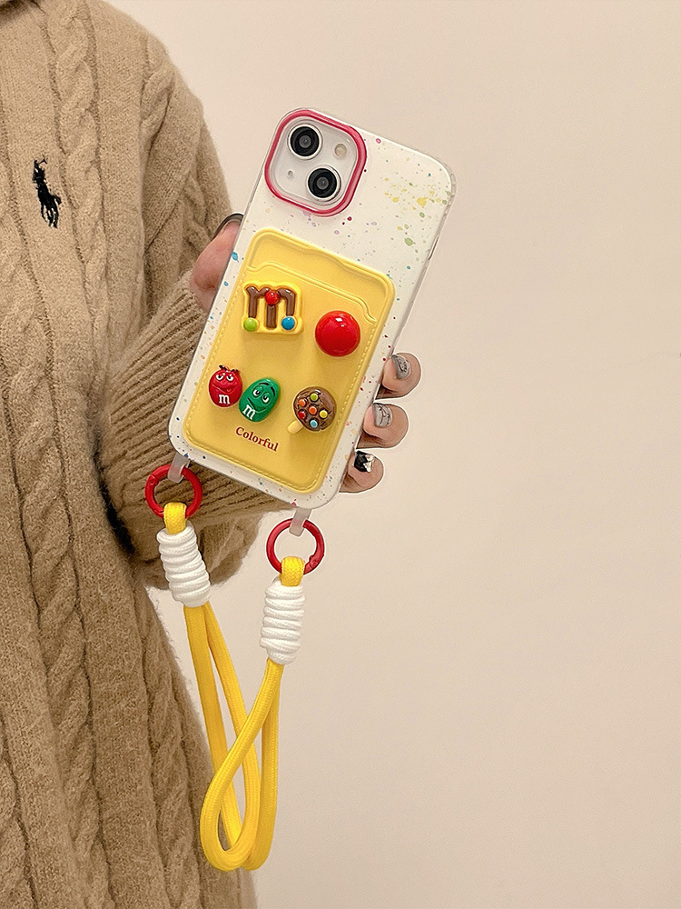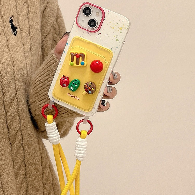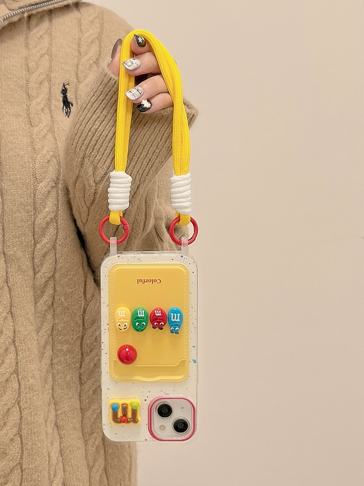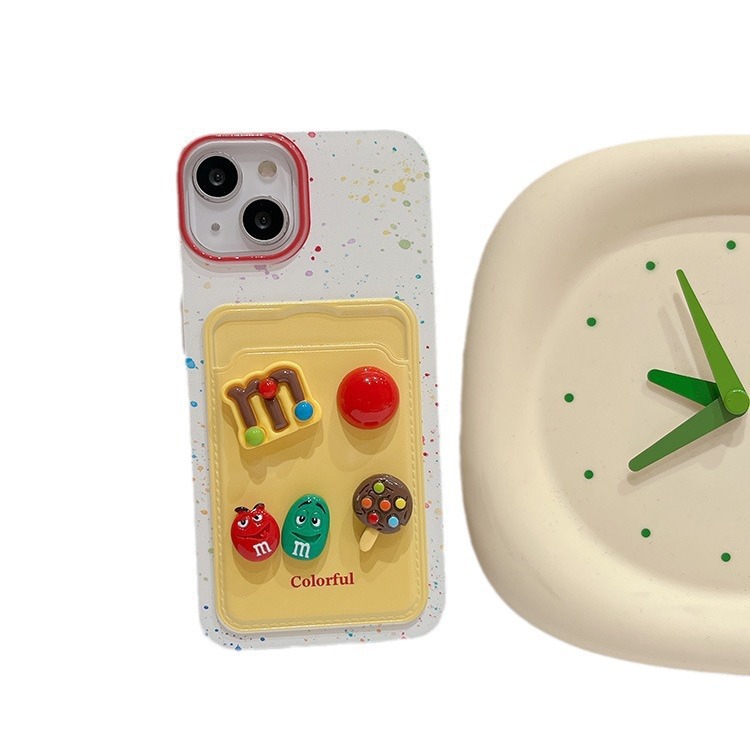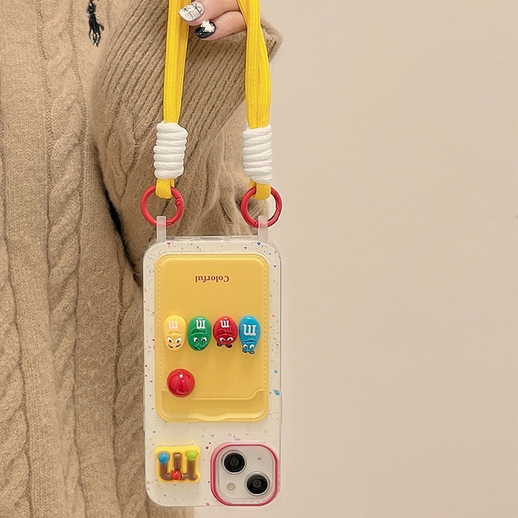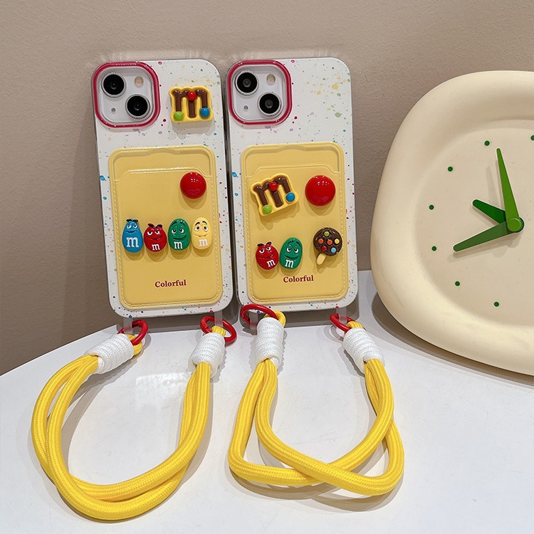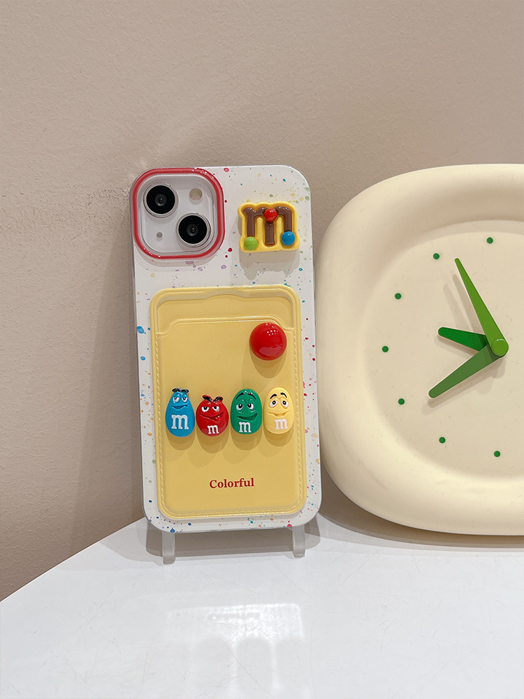 泼墨趣味卡通立体M豆卡包适用iPhone15苹果14华为P70手机壳13挂绳
