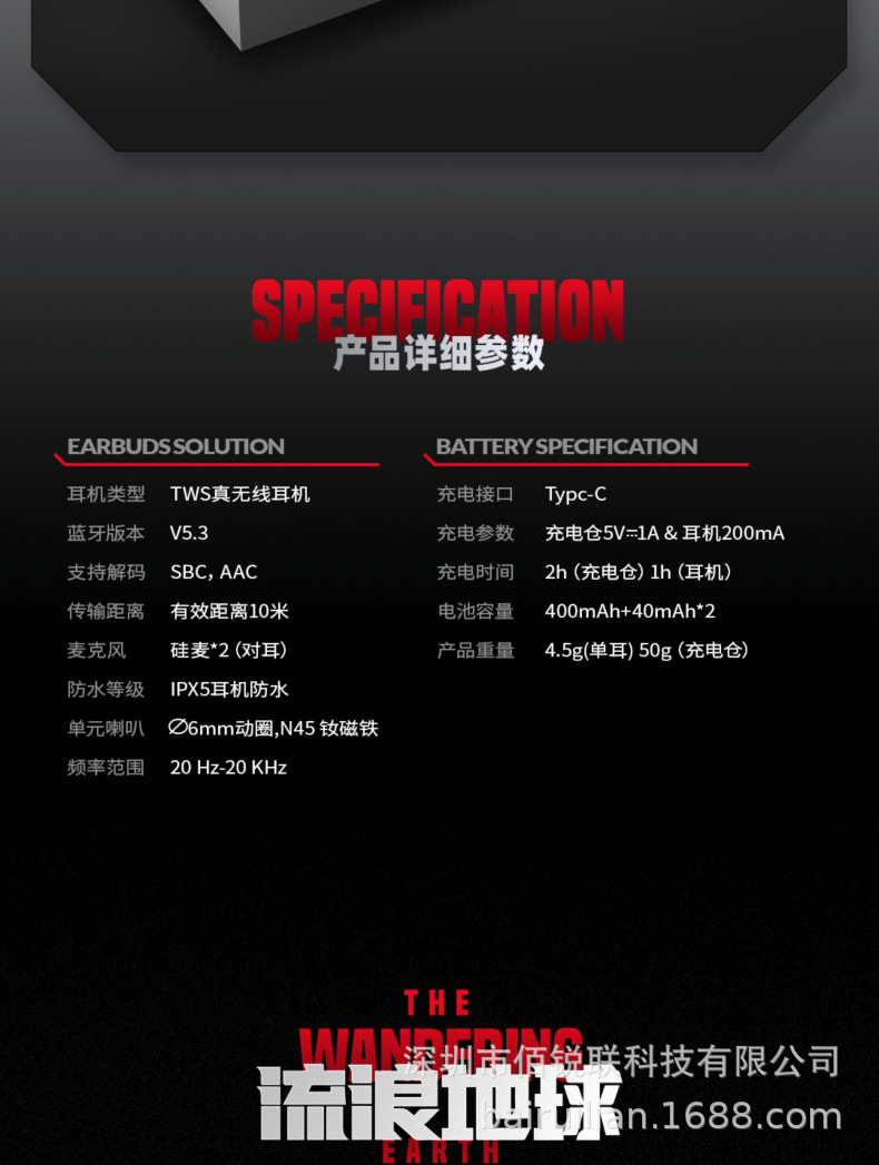SONGX无线蓝牙耳机流浪地球联名周边2023新款高端品质蓝牙耳机