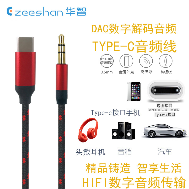 type-c转3.5mm音频线aux音频线手机车载音箱音频线头戴耳机连接线