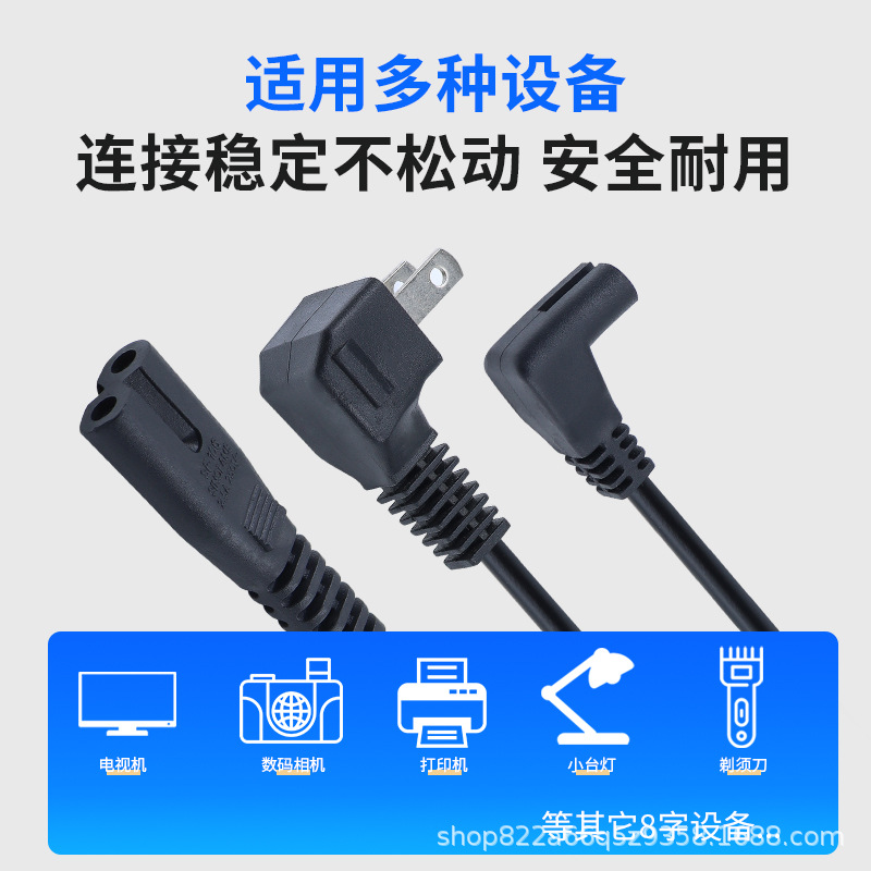 乐视海信三星TCL飞利浦液晶电视机音响电源线两2孔8八字单双弯头