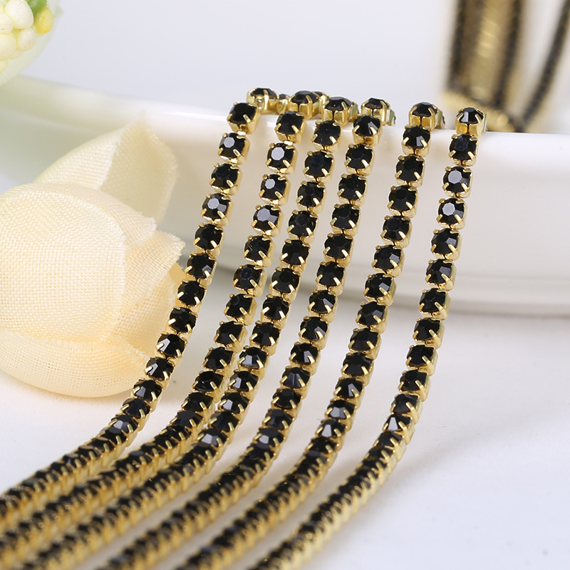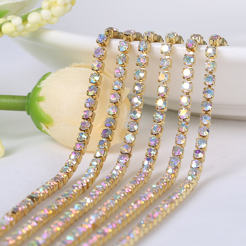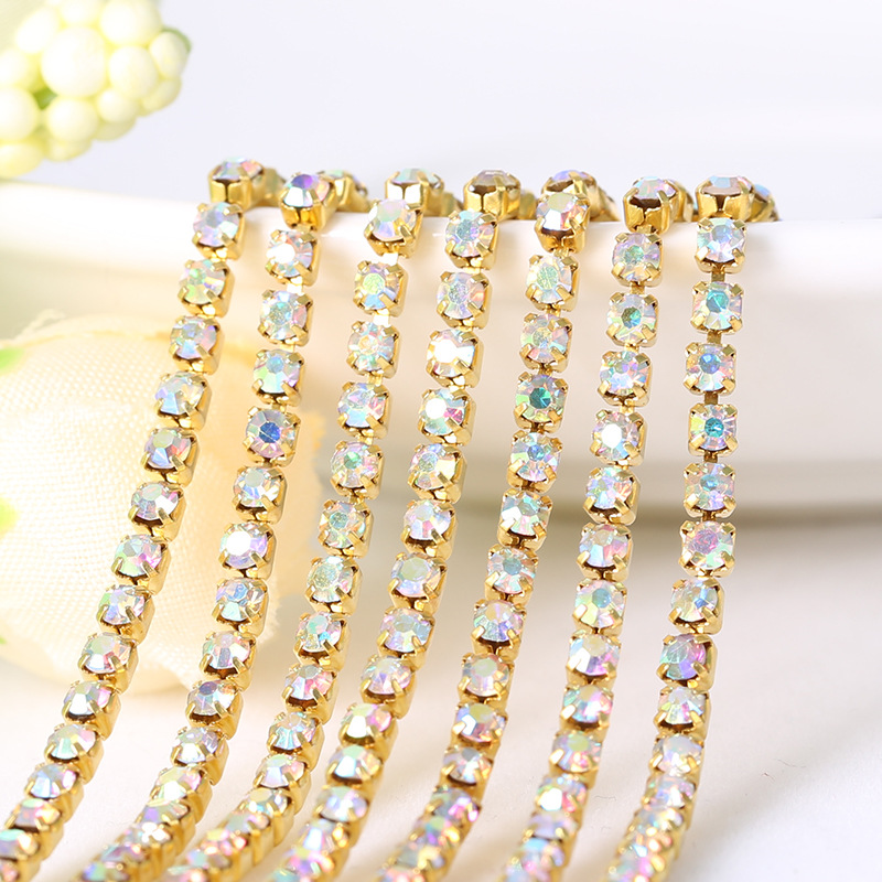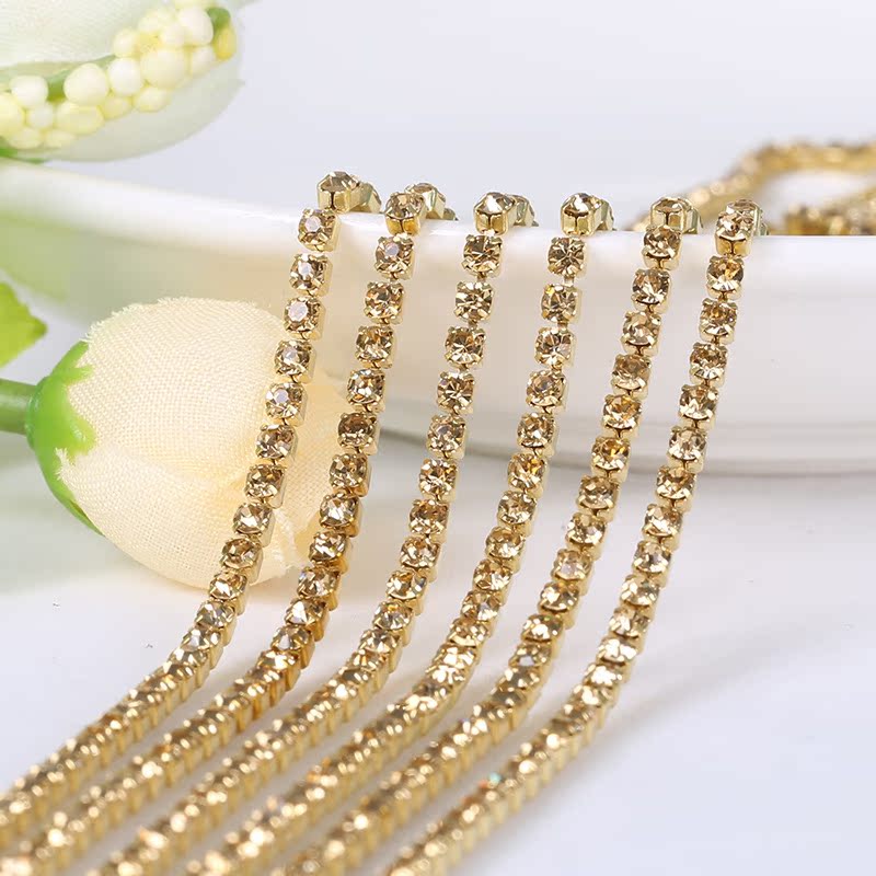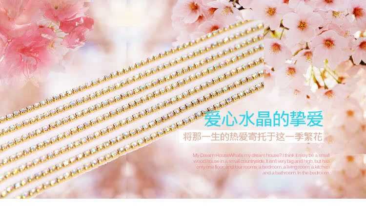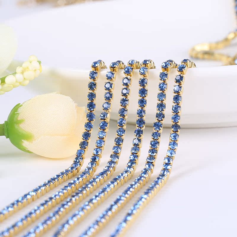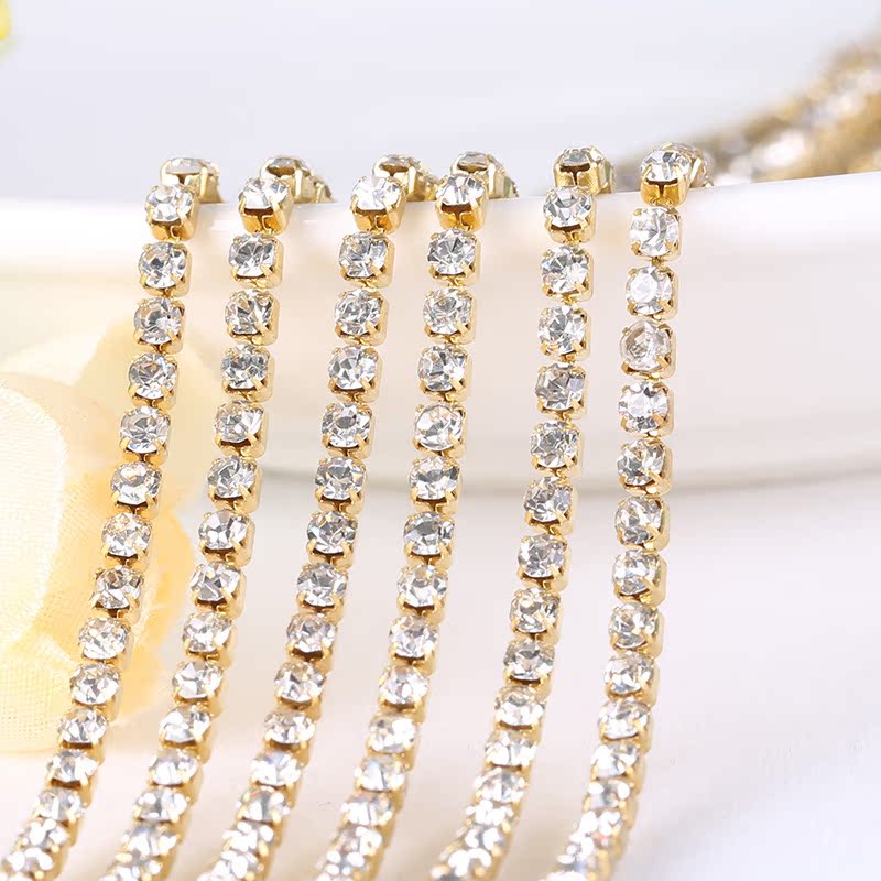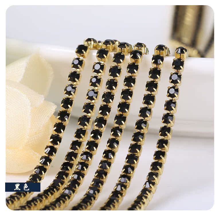 金底彩色钻链2.0mm 2.5mm 3.0mm密集型水钻爪链 DIY手机美容配件