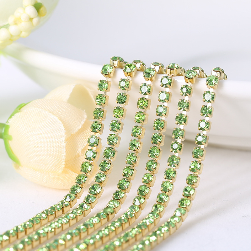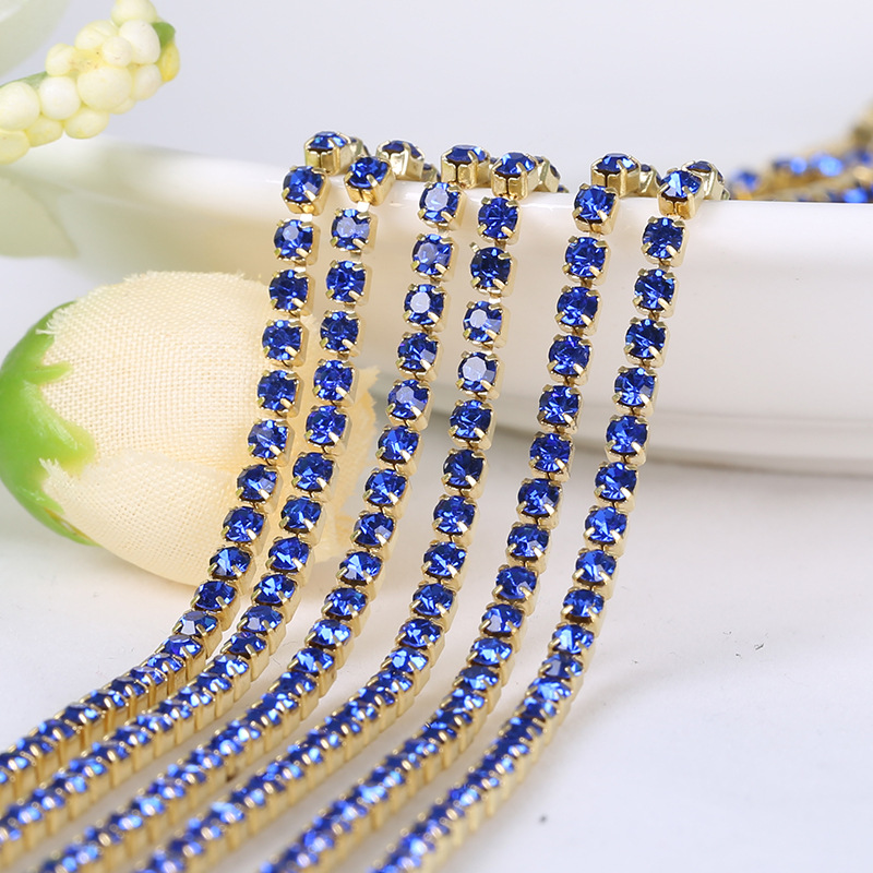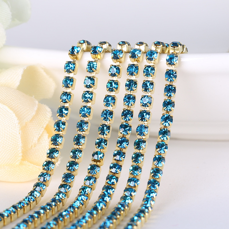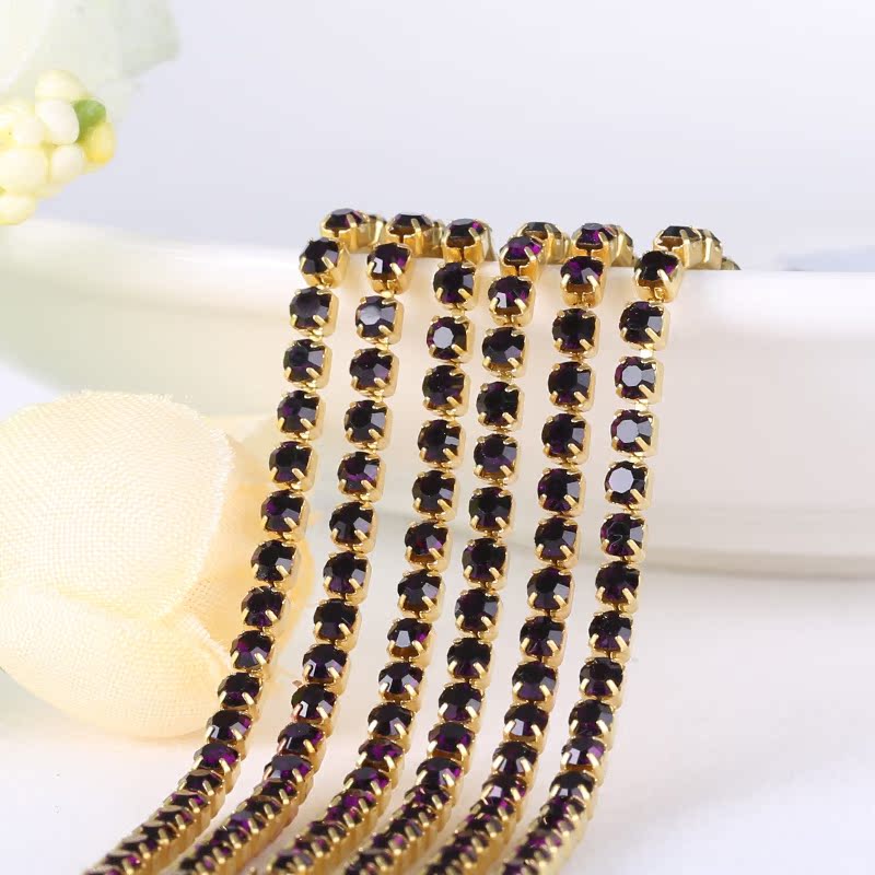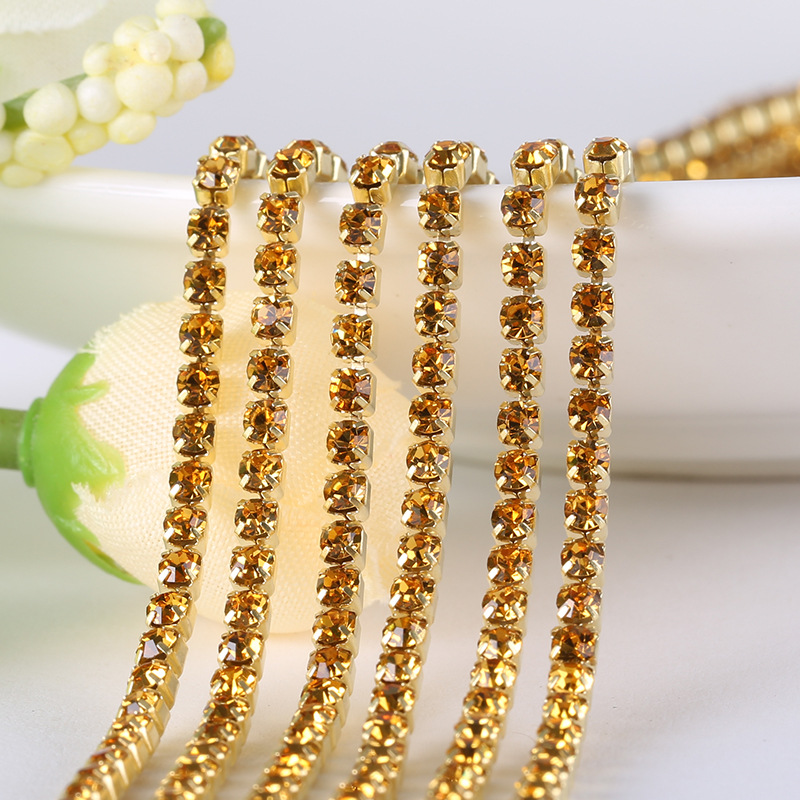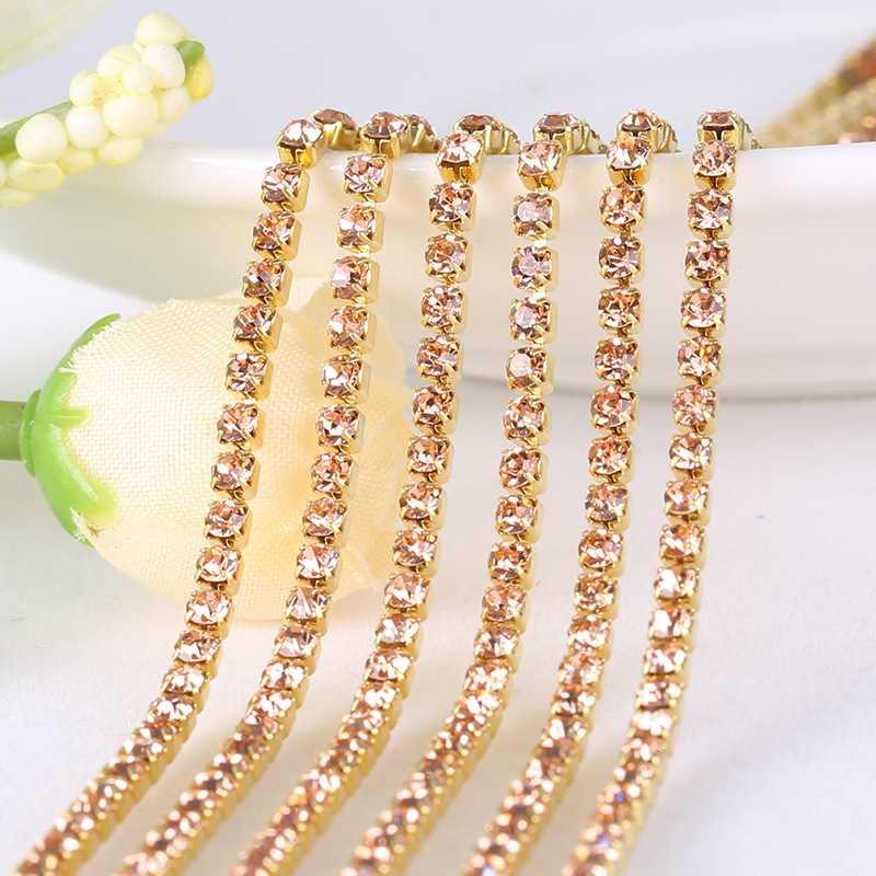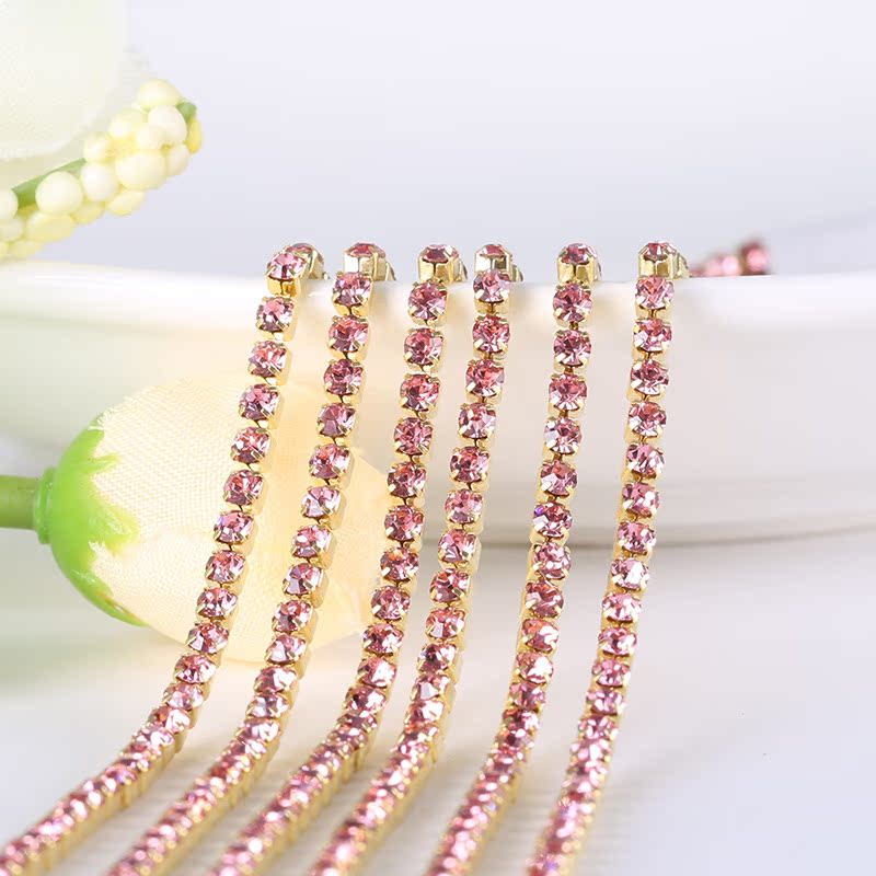 金底彩色钻链2.0mm 2.5mm 3.0mm密集型水钻爪链 DIY手机美容配件