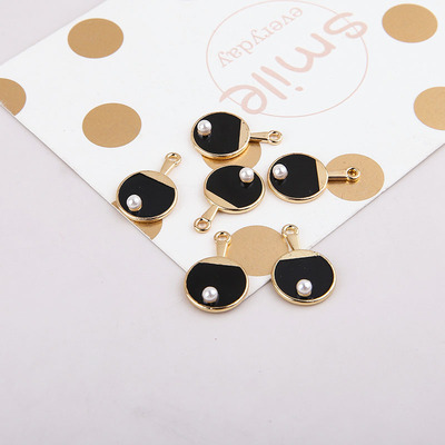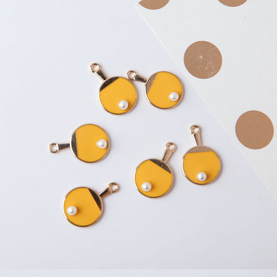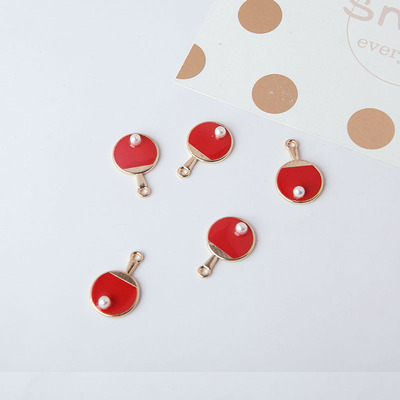 DIY手工饰品配件 合金滴油耳环耳饰手机挂件 趣味珍珠乒乓球拍