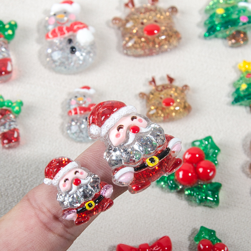diy树脂配件批发 手机挂件钥匙扣发卡杯贴挪车牌 圣诞老人树叶子
