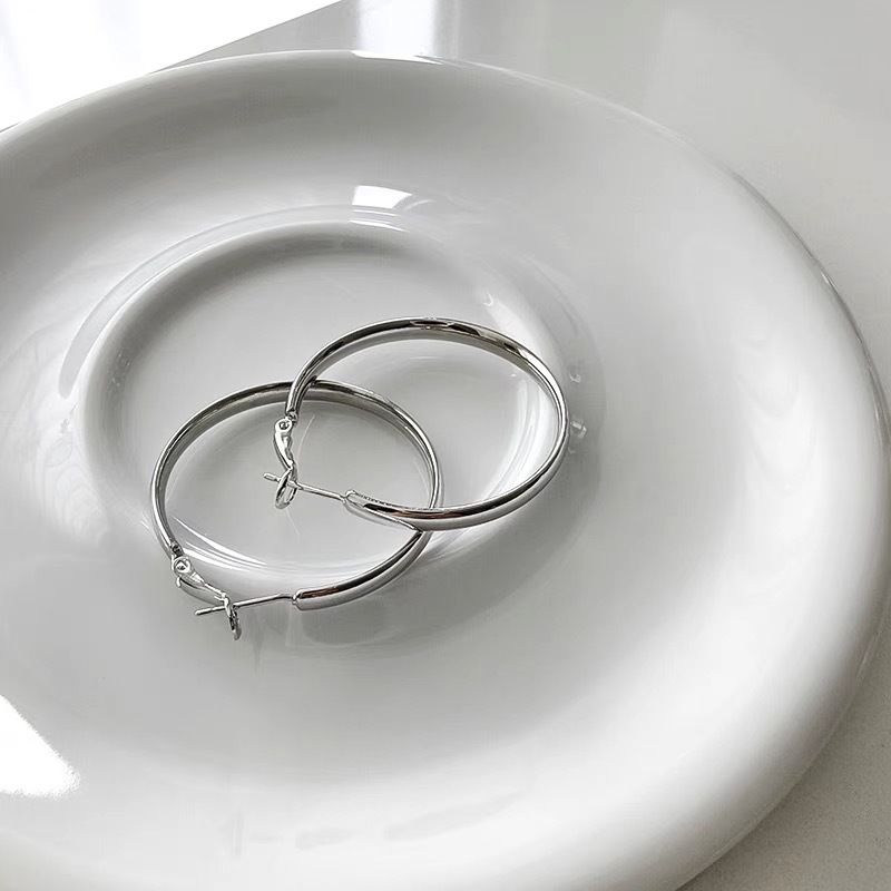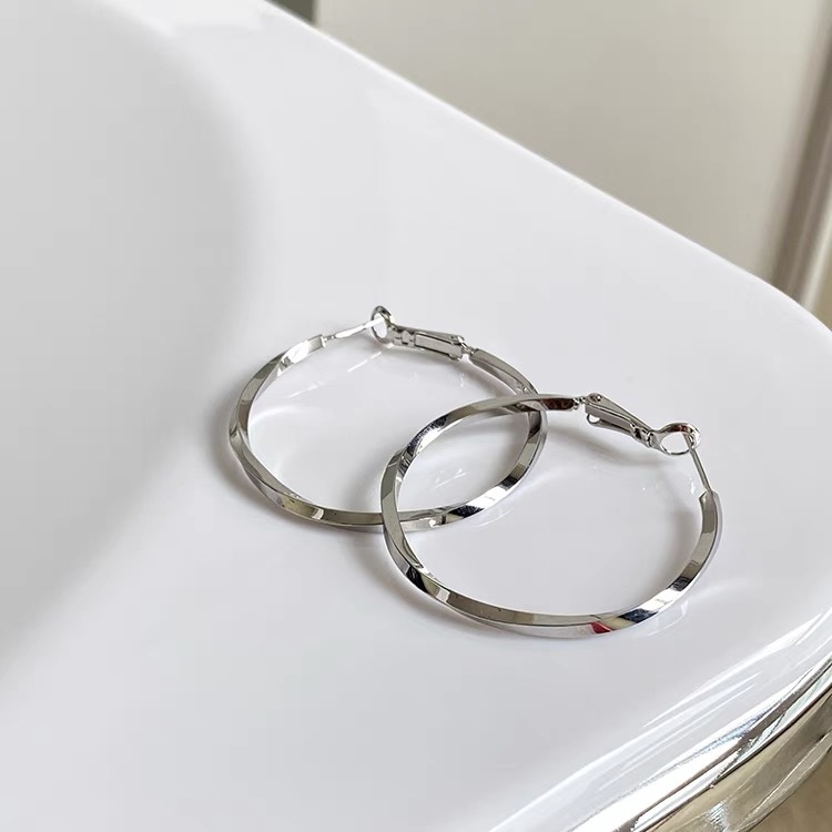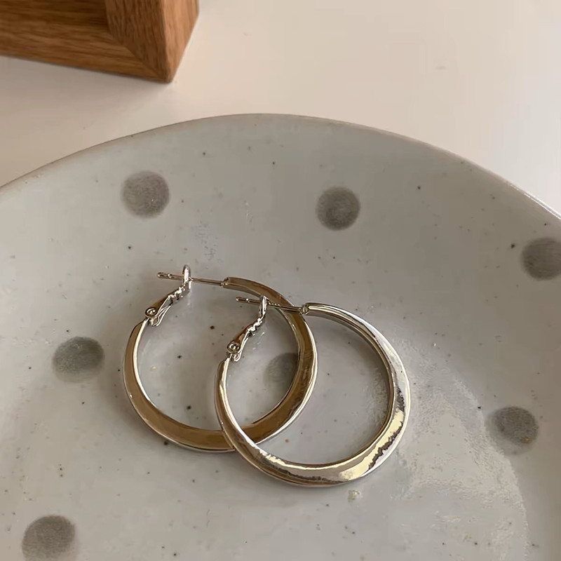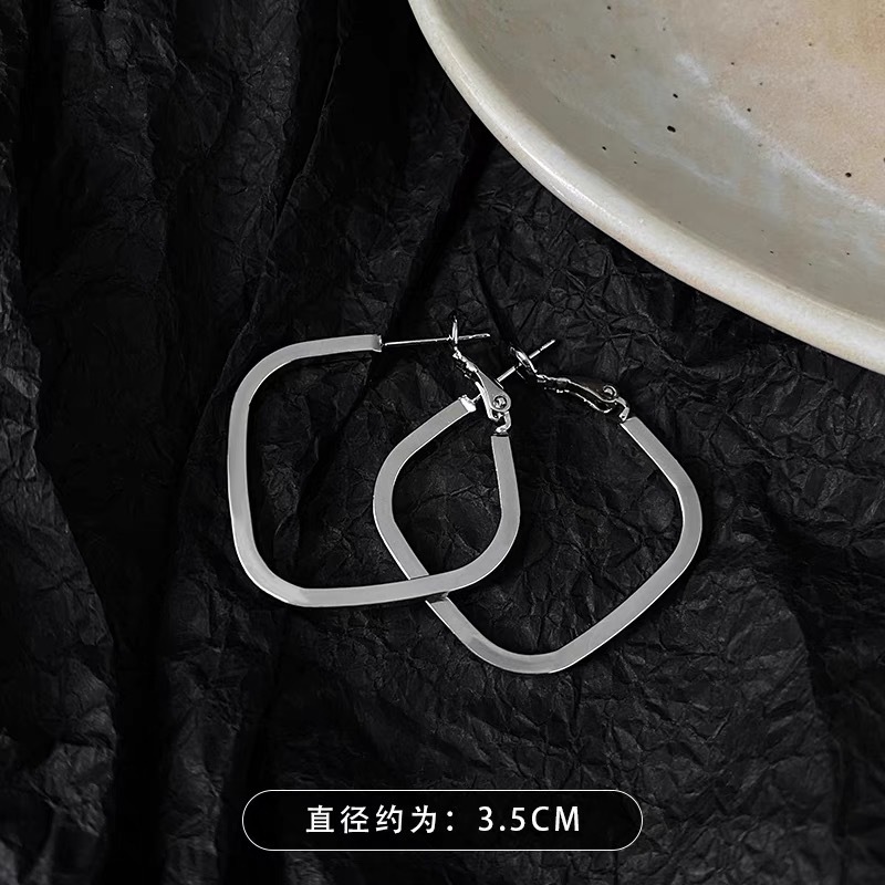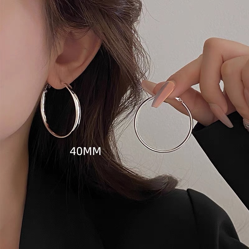 2024新款爆款素圈耳环女高级感欧美夸张大耳圈耳扣银色圈圈耳饰品