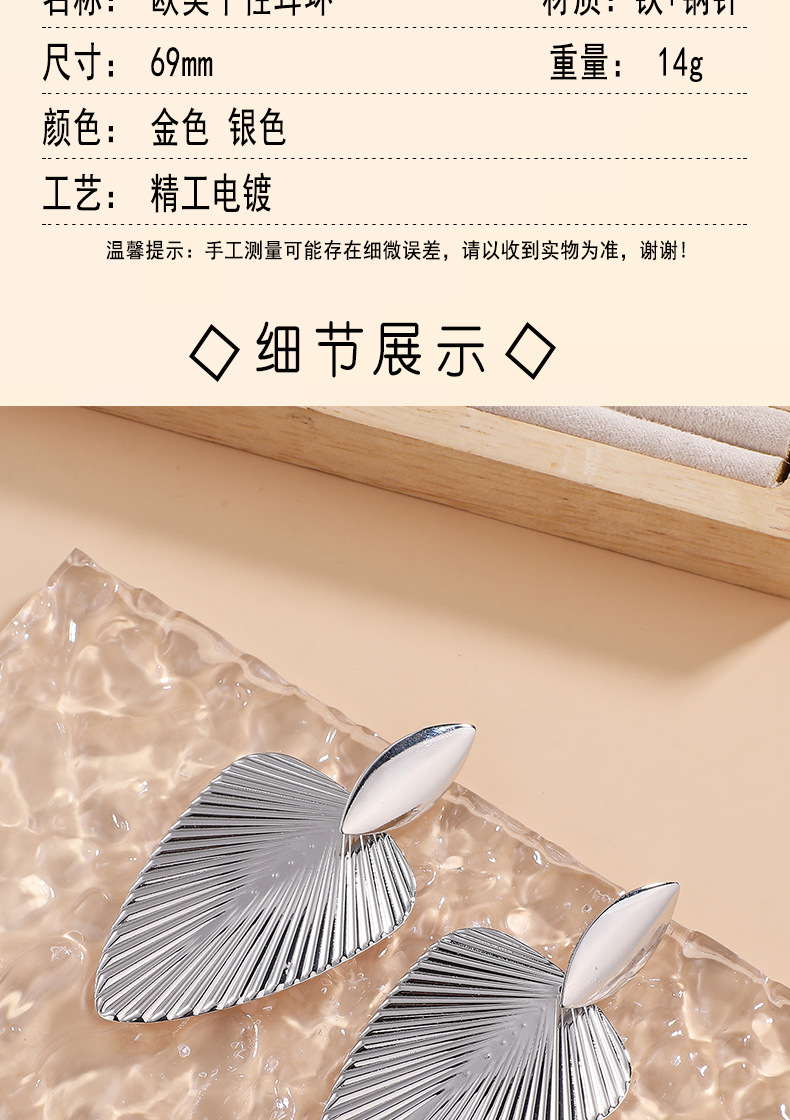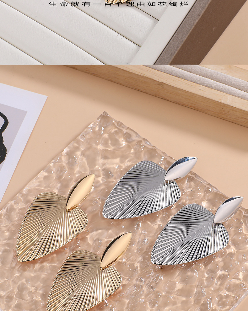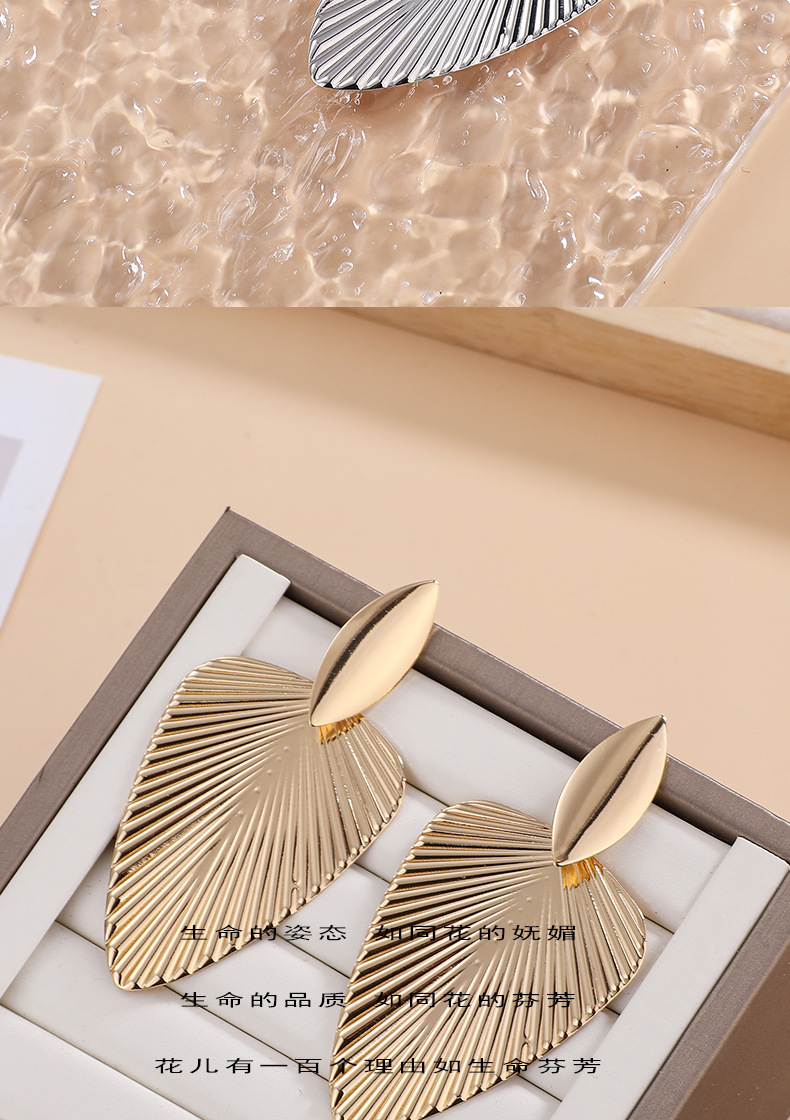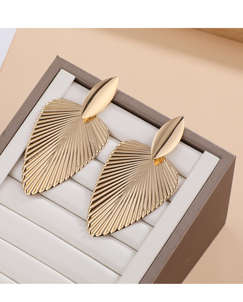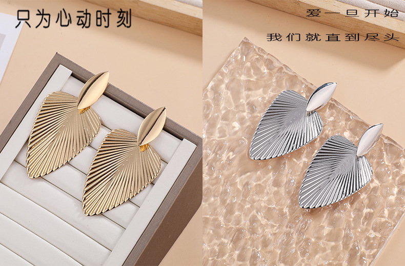 跨境欧美树叶耳环个性夸张高级气质性感几何纹理金属流行耳饰品女