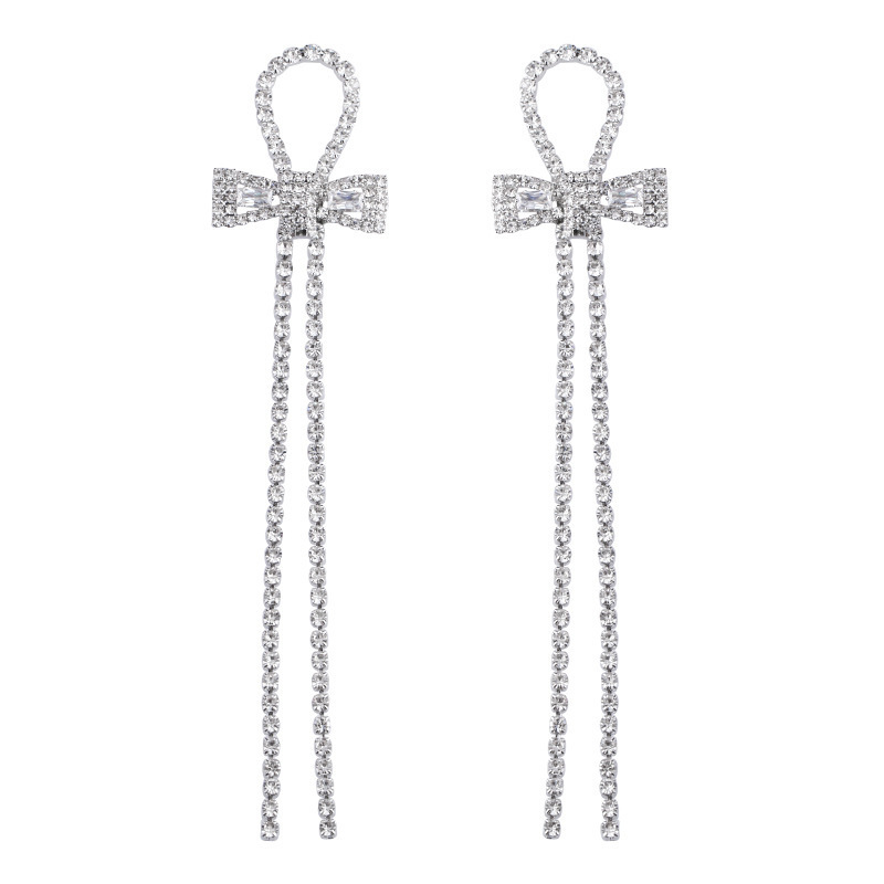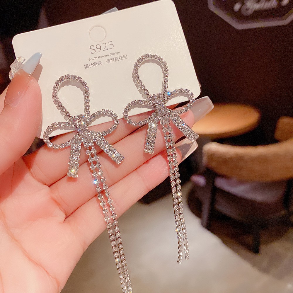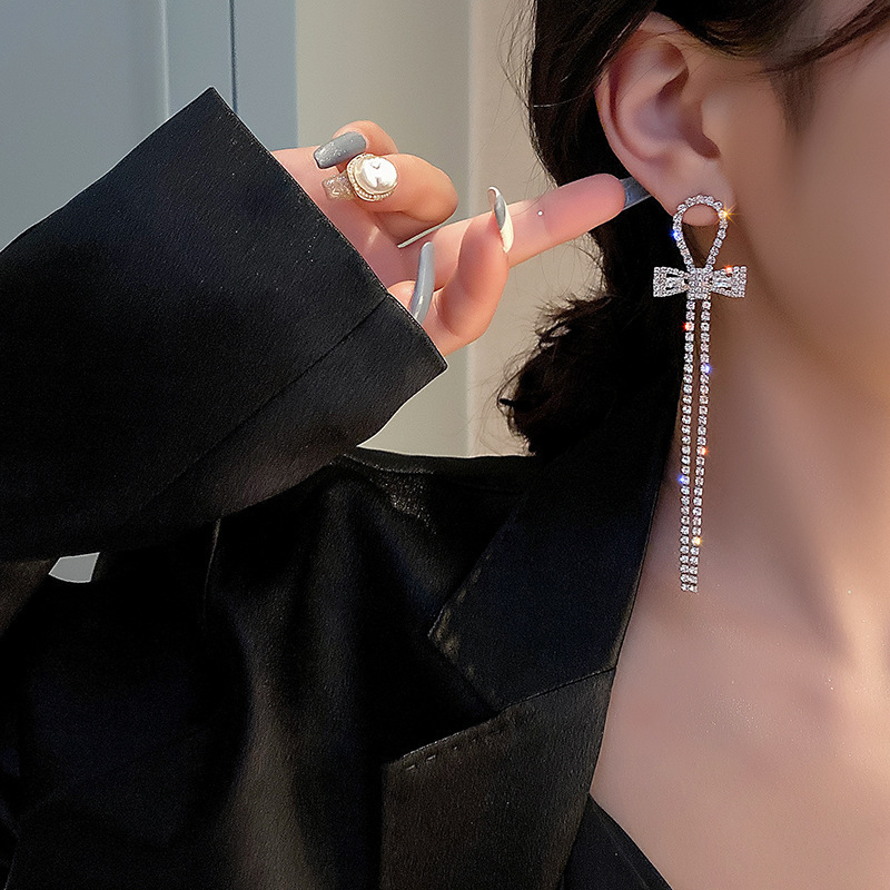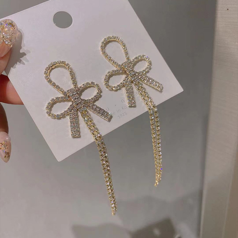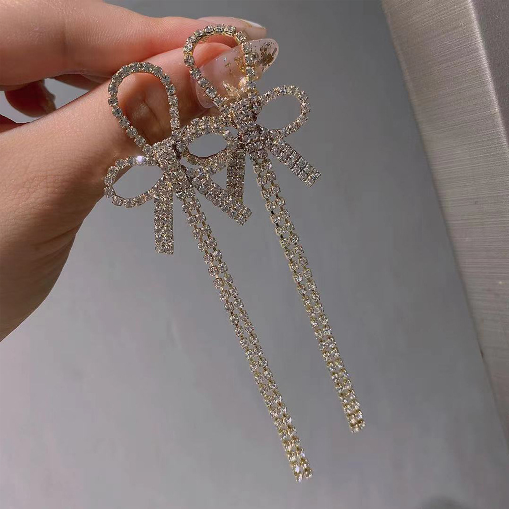 时尚轻奢蝴蝶结流苏耳环高级感超仙满钻百搭耳坠网红跨境耳饰批发