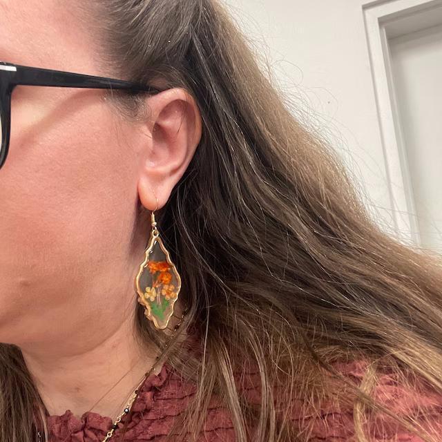 庭岳 跨境外贸 亚马逊压制野花多花树脂干花坠耳环 厂家直销