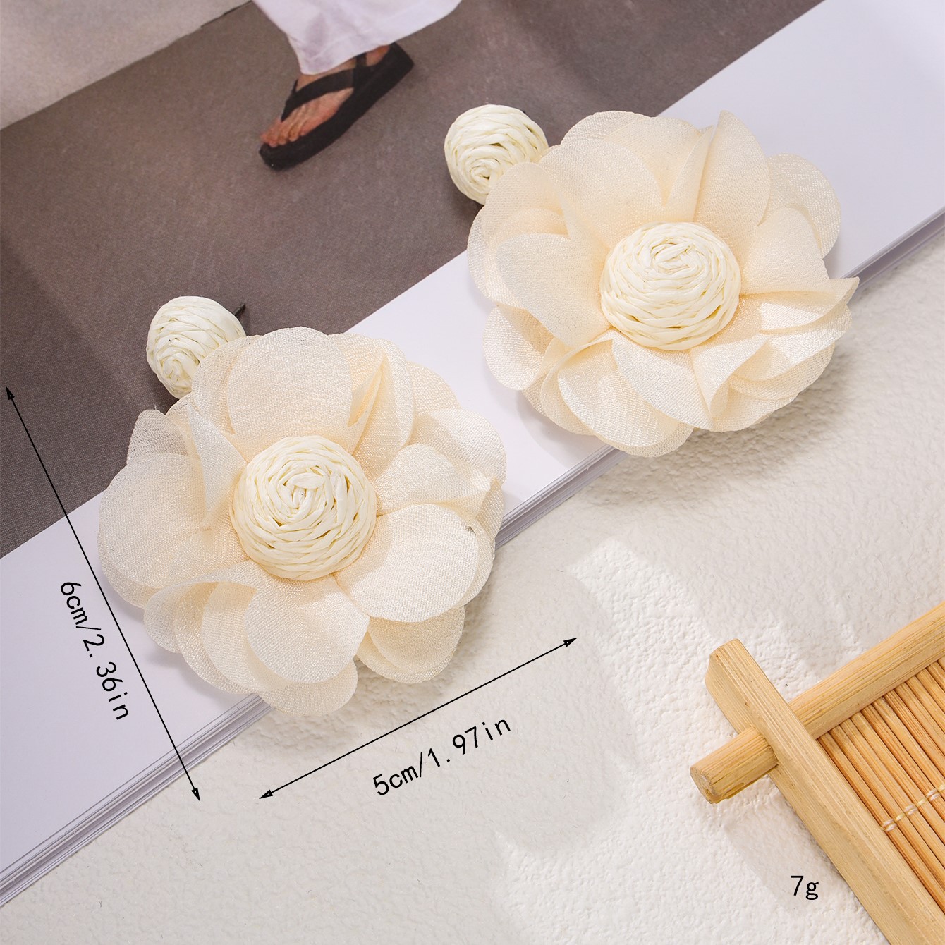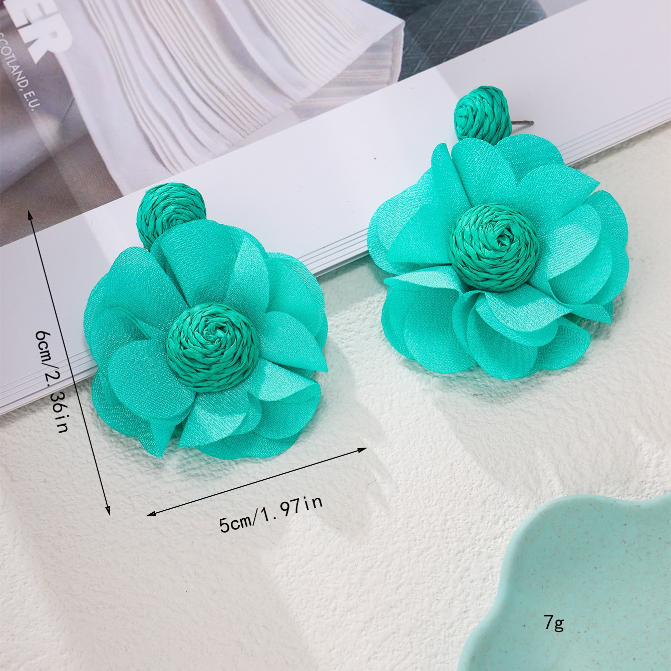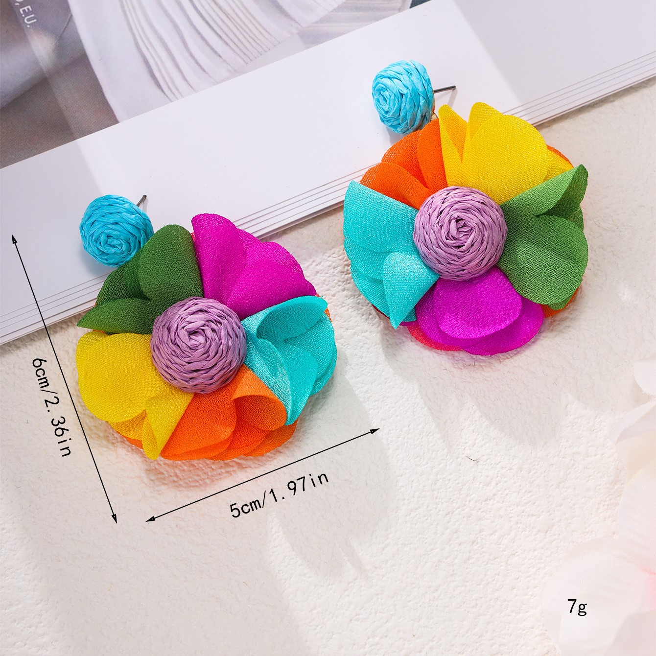 跨境新款耳环女甜美花朵拉菲草耳环个性时尚手工编织饰品耳饰批发