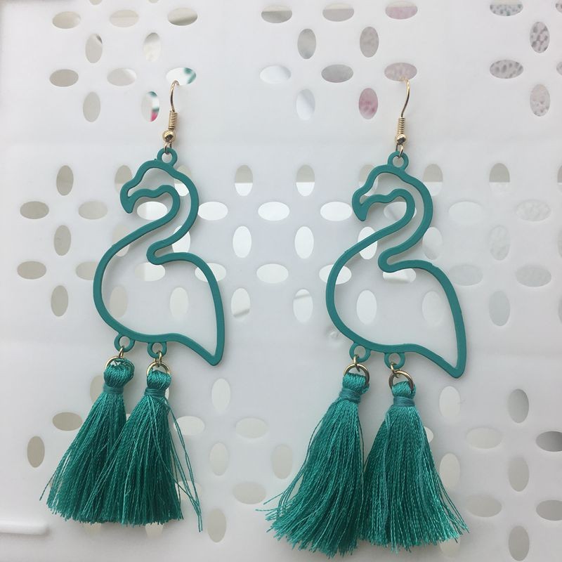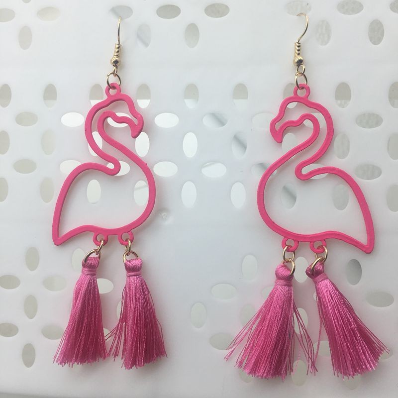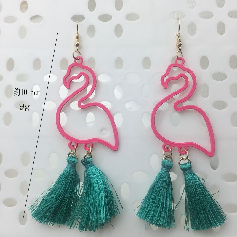 旺琳跨境欧美时尚个性镂空火烈鸟耳环创意夸张长款带流苏圣诞礼物