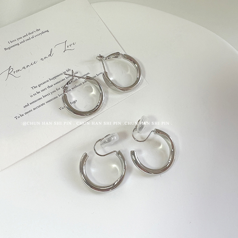 金属感c形耳圈无耳洞耳夹简约几何圆形耳环冷淡风个性蚊香盘耳饰