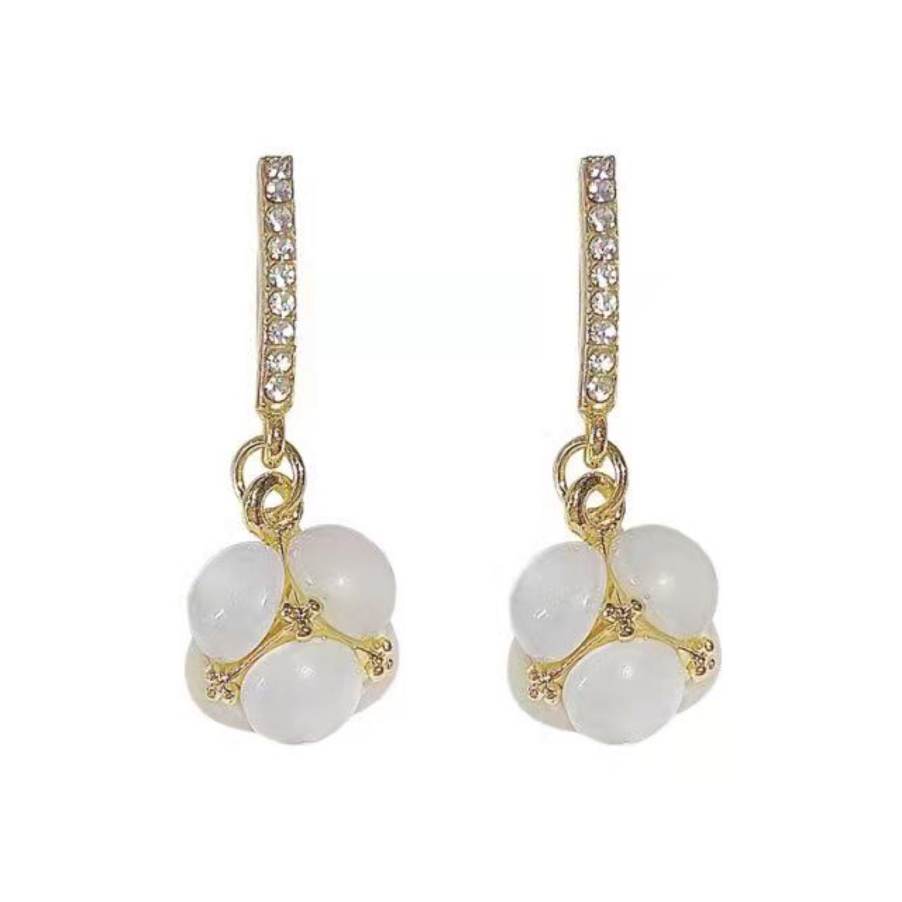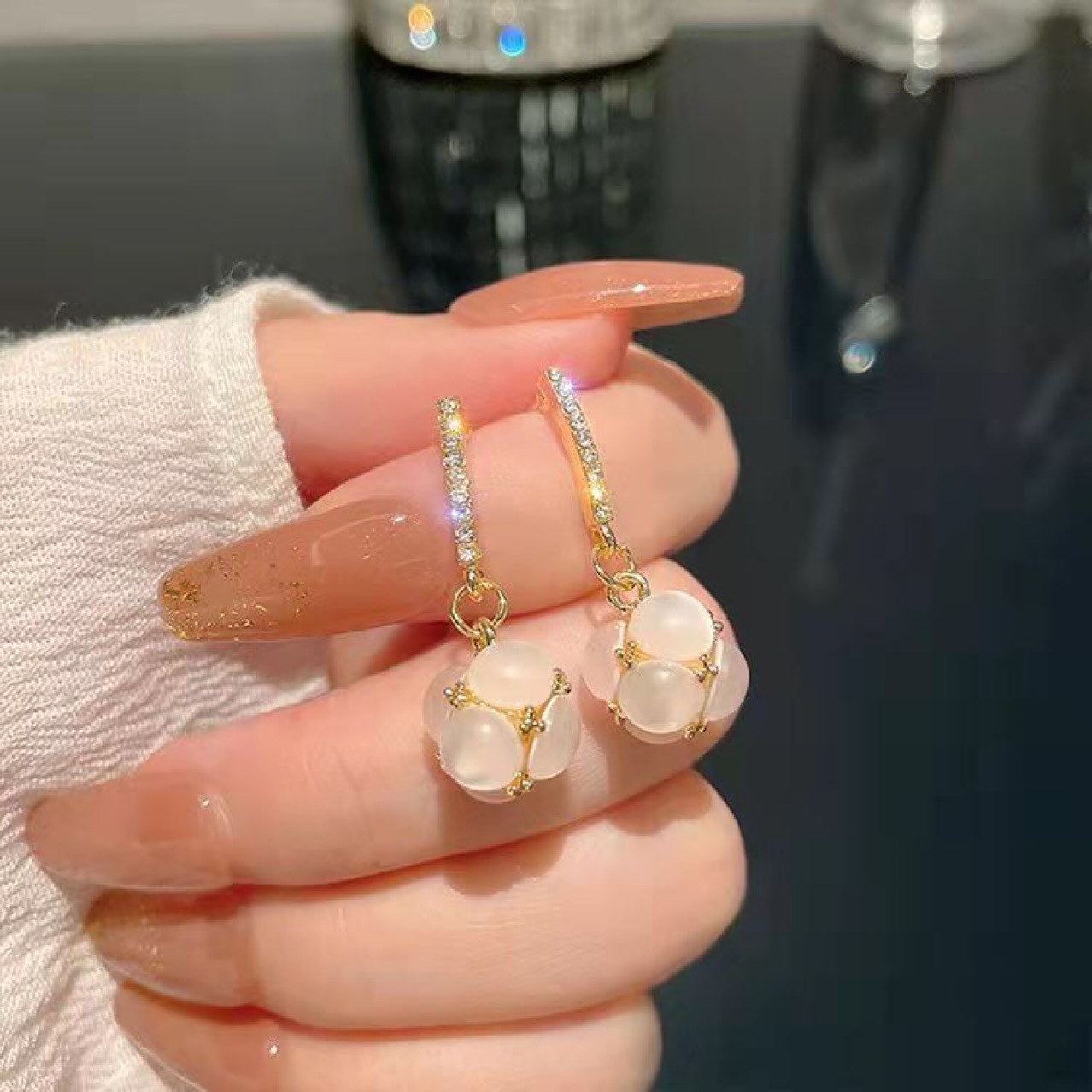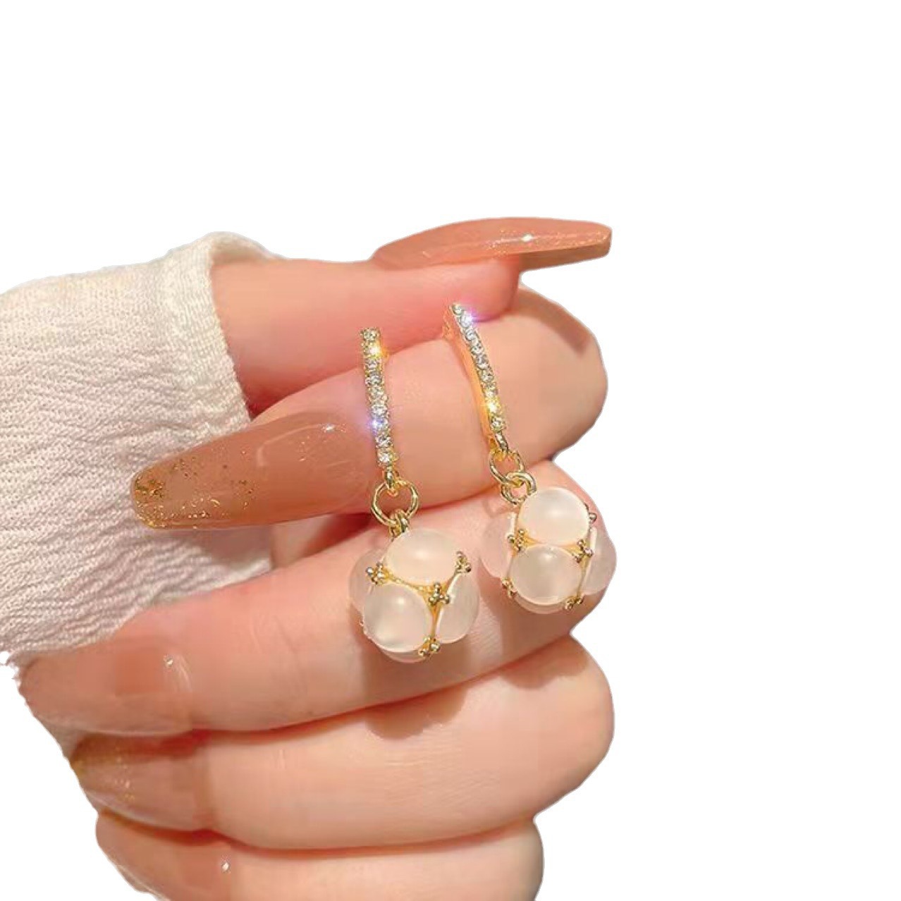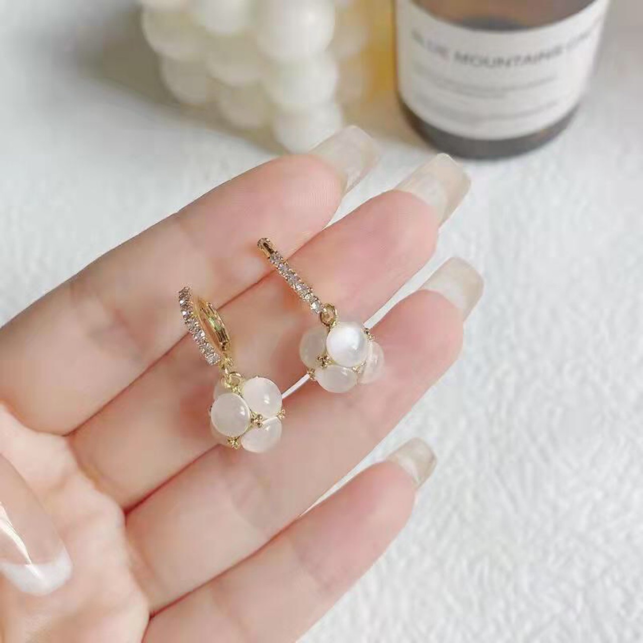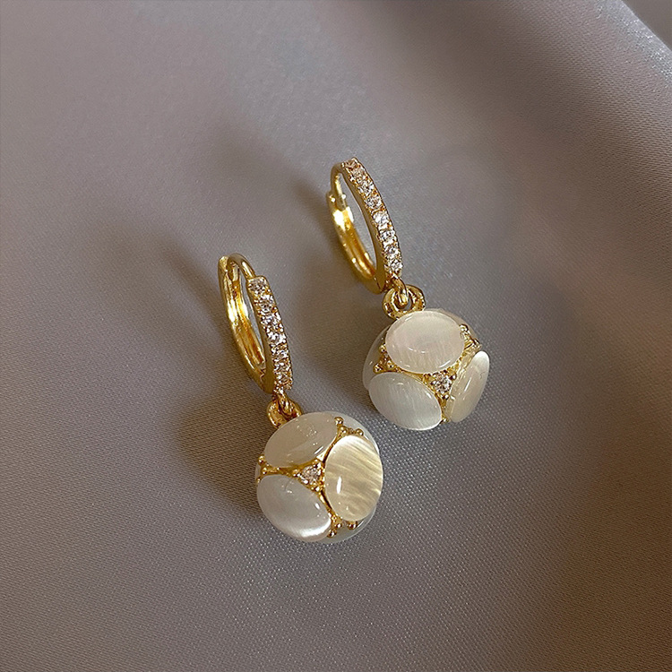 抖音同款猫眼石绣球微镶耳扣气质温柔小巧淑女几何个性耳环耳饰女