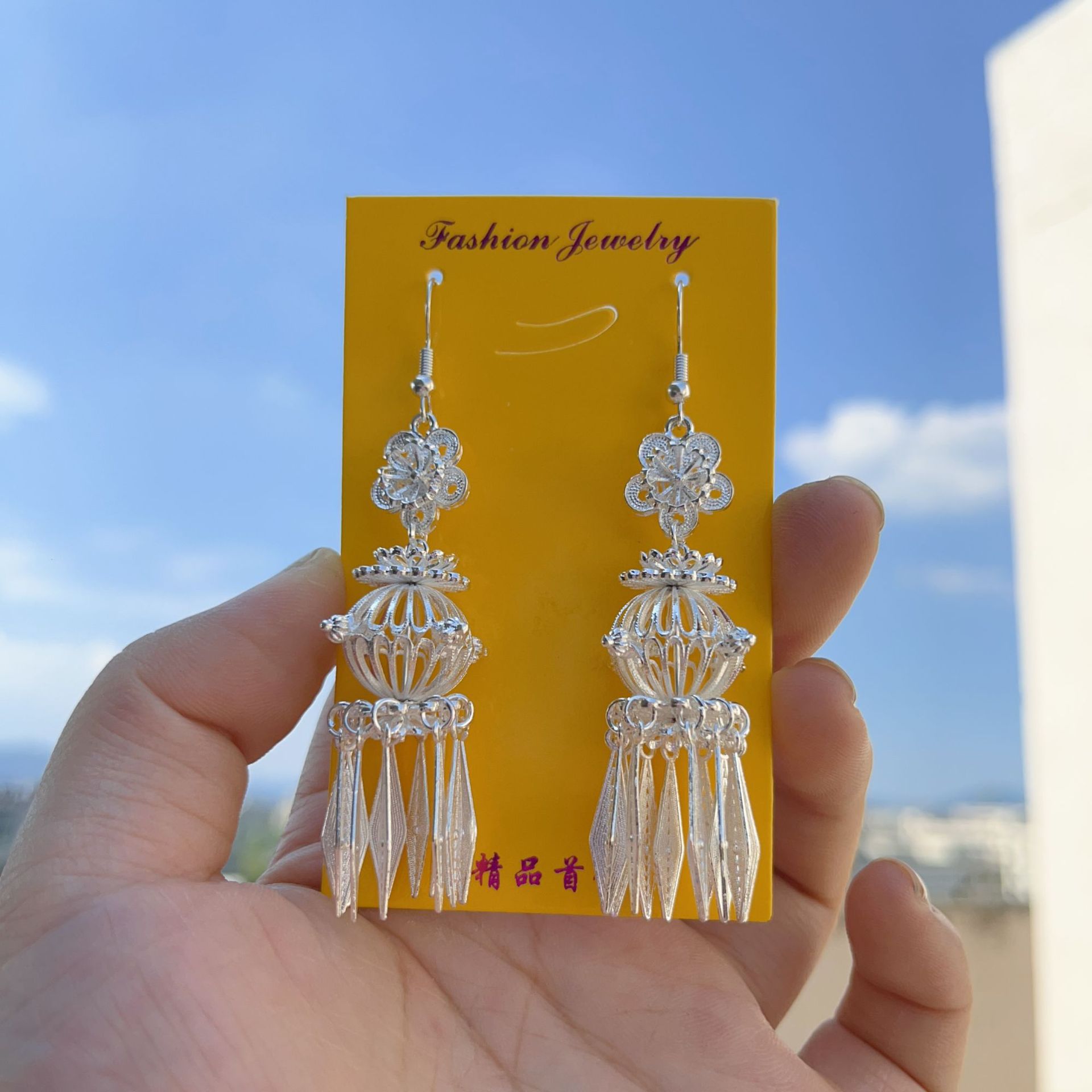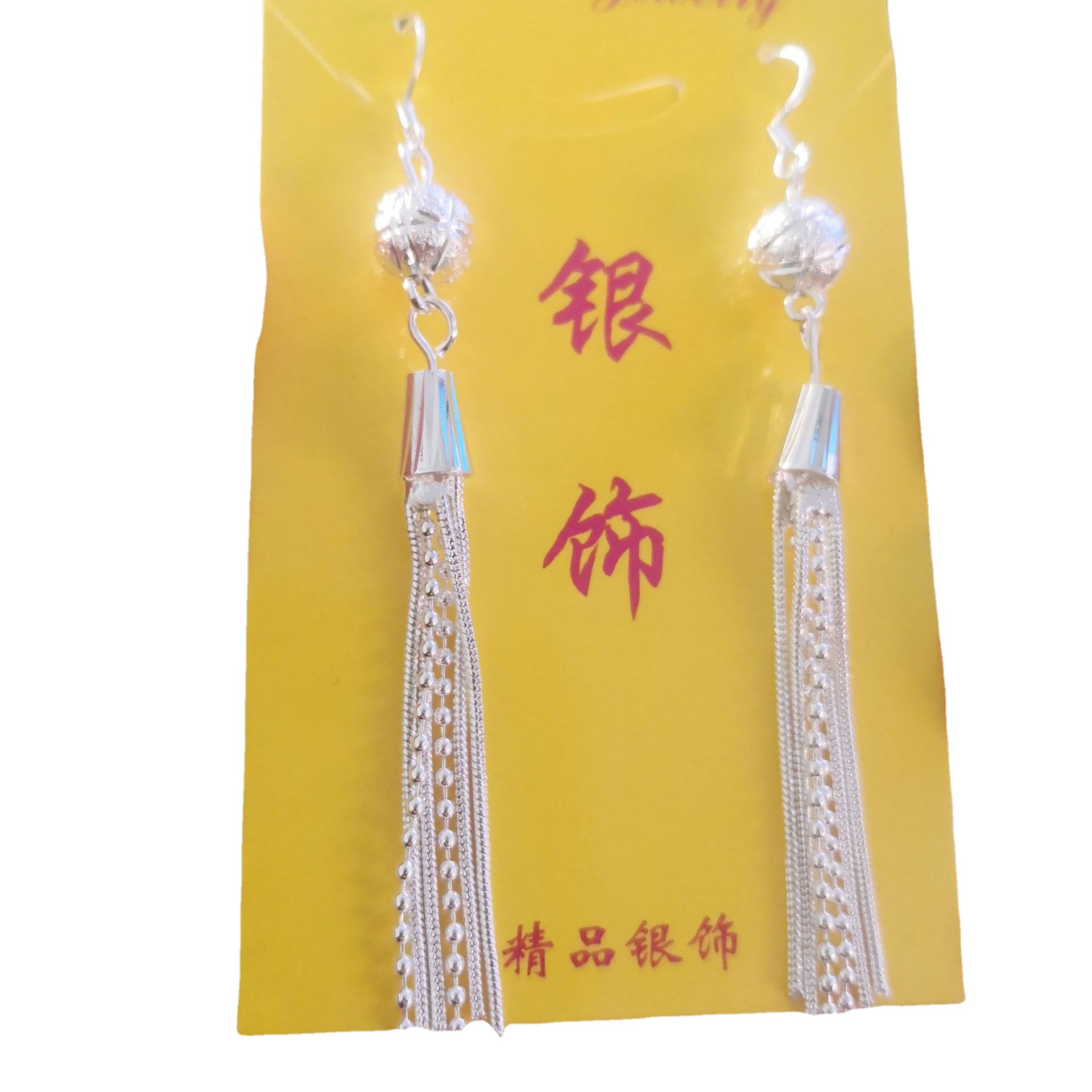4# imitation silver lantern long fringe earrings(4# 仿银灯笼长流苏耳环) USD $0.81 5095 pair available
