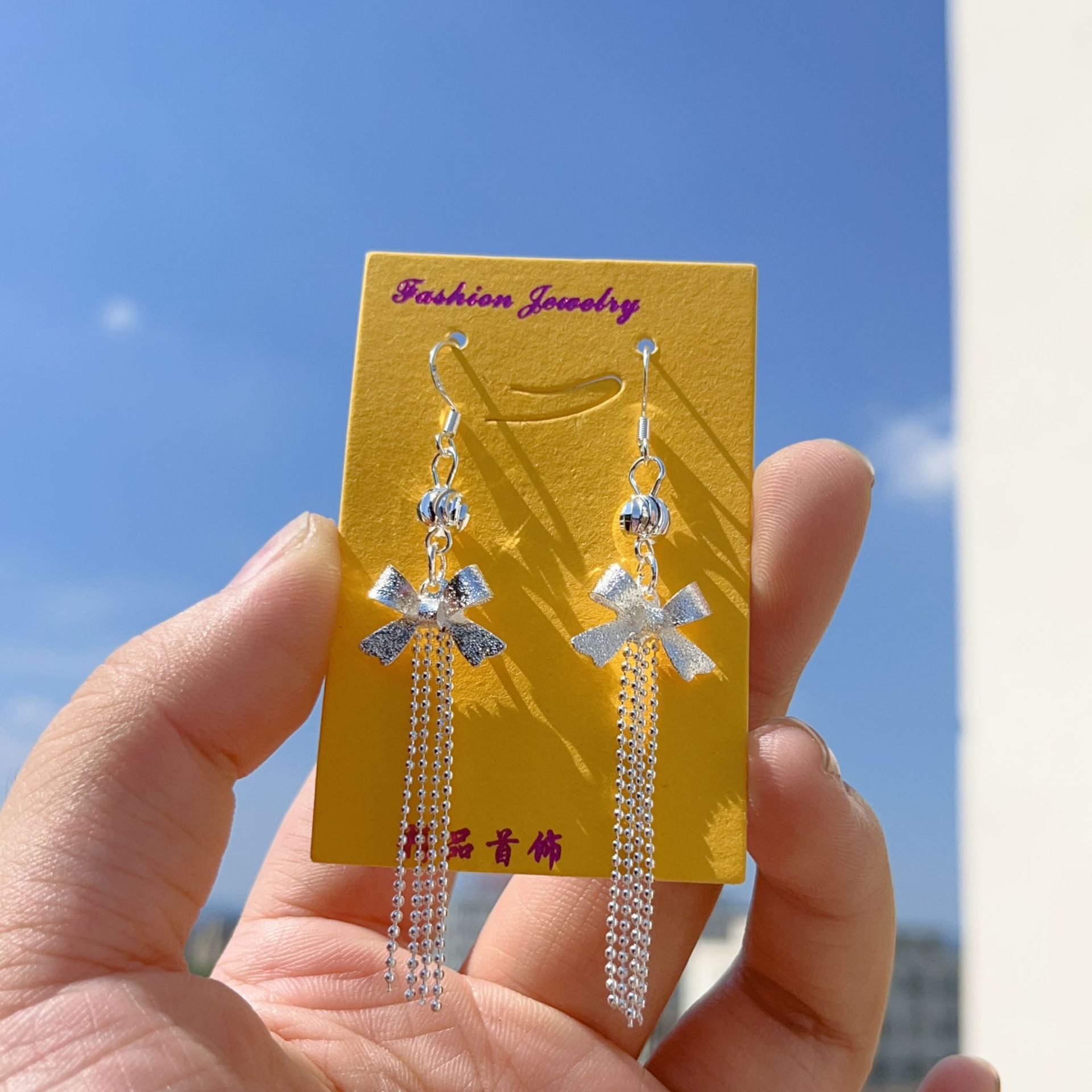 10# imitation silver bow tassel earrings(10#仿银蝴蝶结流苏耳环) USD $0.86 0 pair available Out of Stock