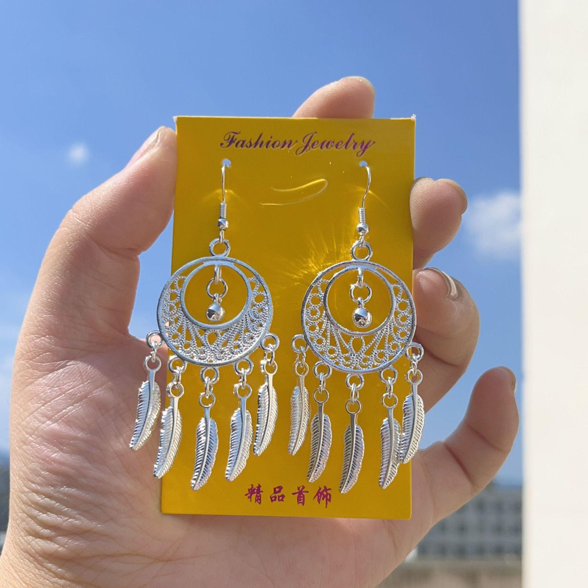 展销会民族风苗银耳坠时尚款镀银孔雀开票宫廷花绣球长流苏耳环女
