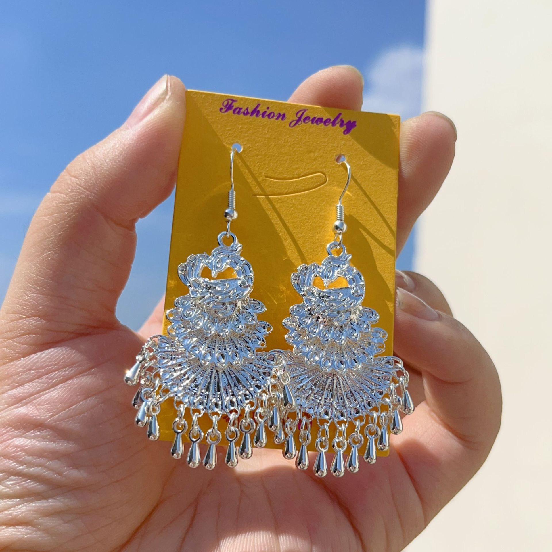 7# imitation silver peacock open screen earrings(7#仿银孔雀开屏耳环) USD $1.18 6234 pair available