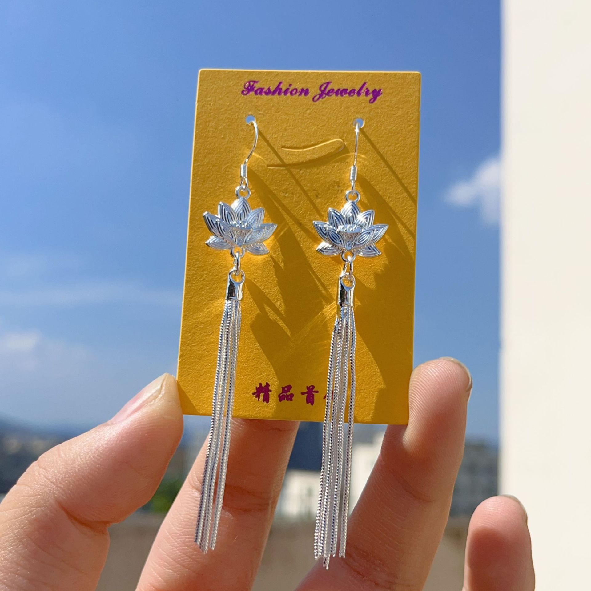 8# imitation silver long fringe pendant court flower earrings(8# 仿银长流苏坠宫廷花耳环) USD $1.18 6310 pair available