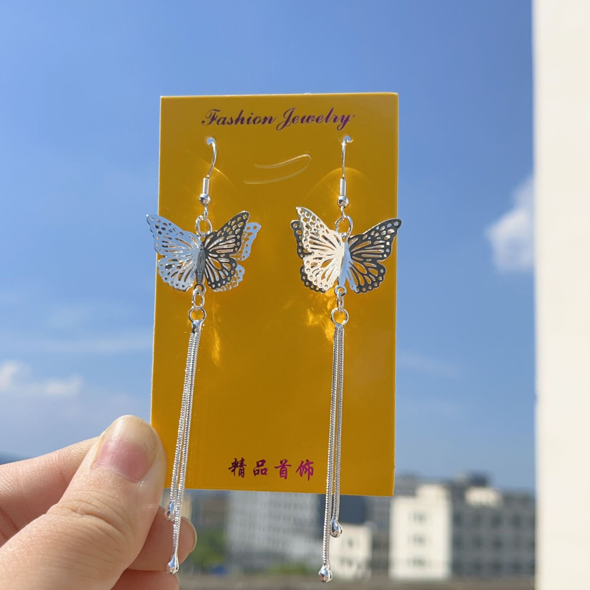11# imitation silver double butterfly long fringe earrings(11#仿银双层蝴蝶长流苏耳环) USD $0.75 0 pair available Out of Stock