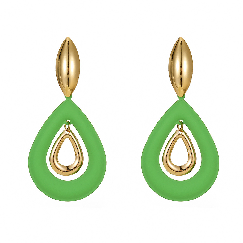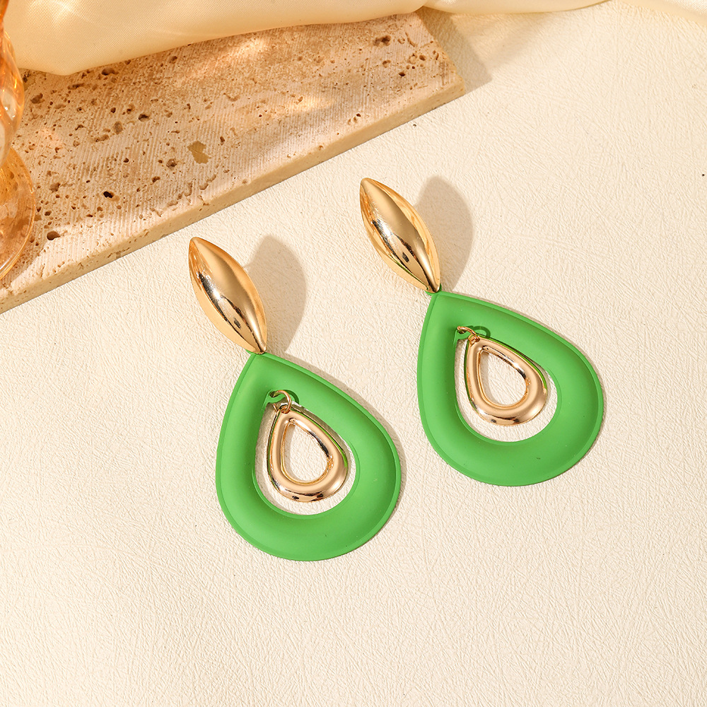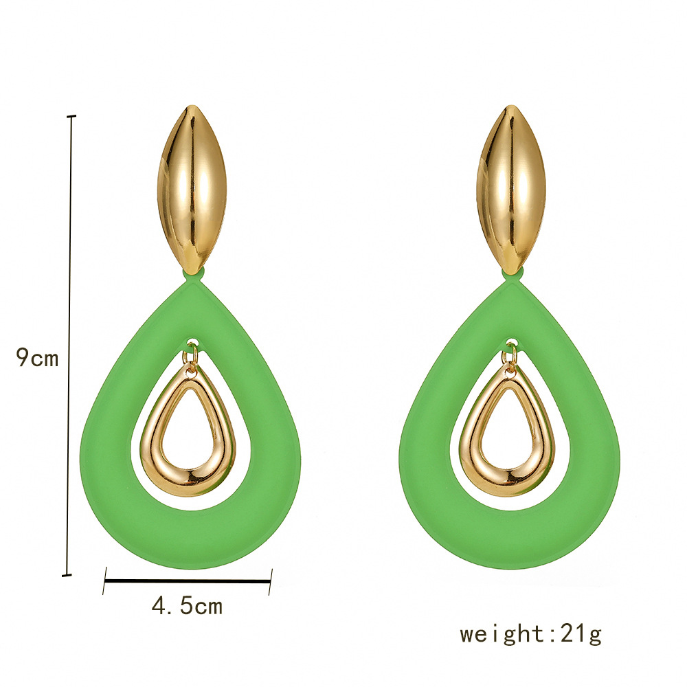 欧美跨境时尚设计百搭春夏彩色喷漆金属夸张几何水滴长耳环耳饰