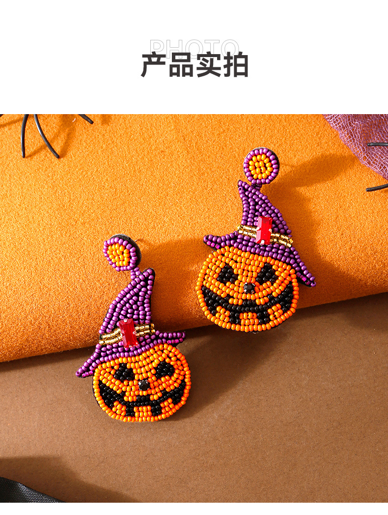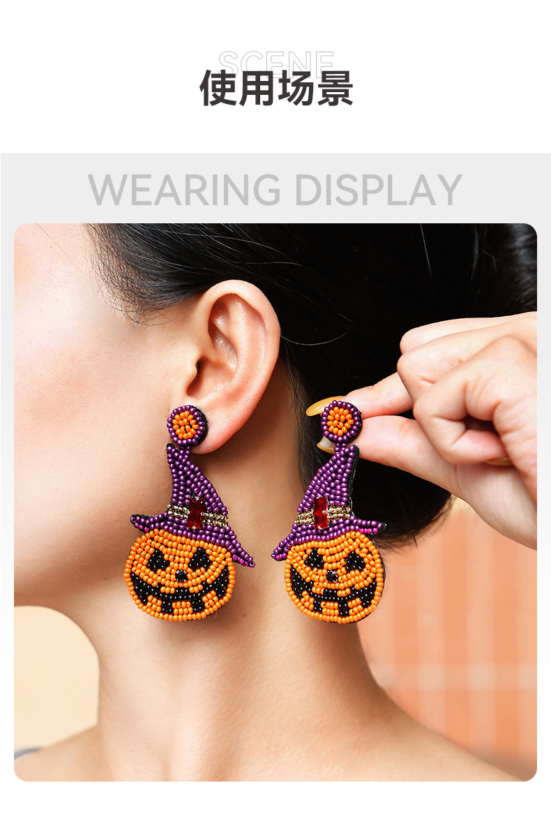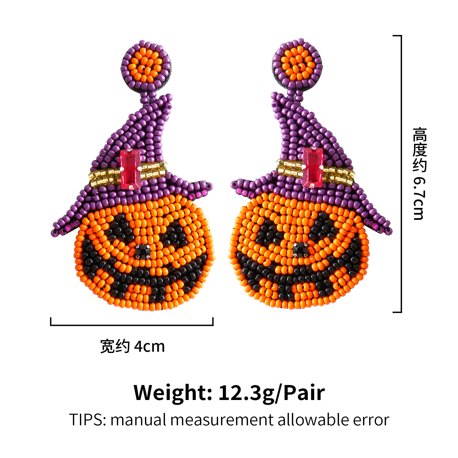 2024新款跨境欧美耳坠万圣节南瓜恶搞耳饰手工串珠设计感米珠耳环