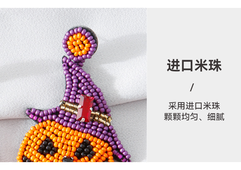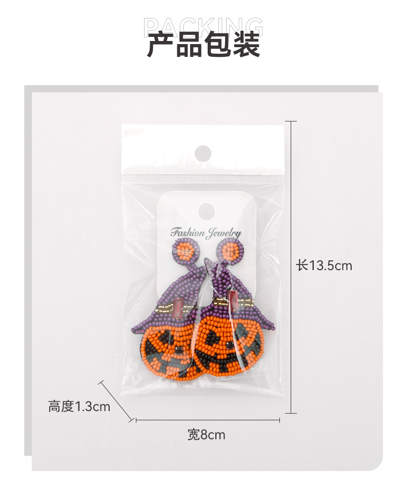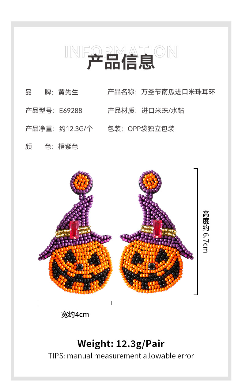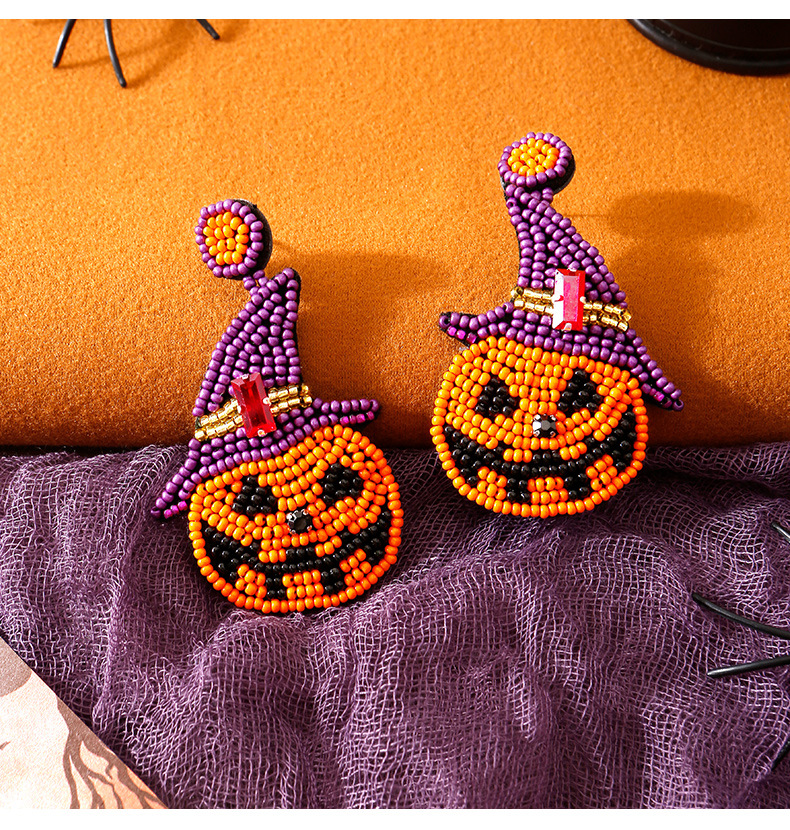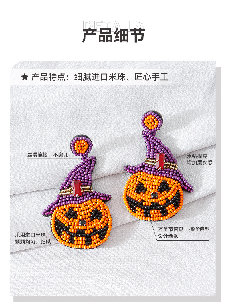 2024新款跨境欧美耳坠万圣节南瓜恶搞耳饰手工串珠设计感米珠耳环