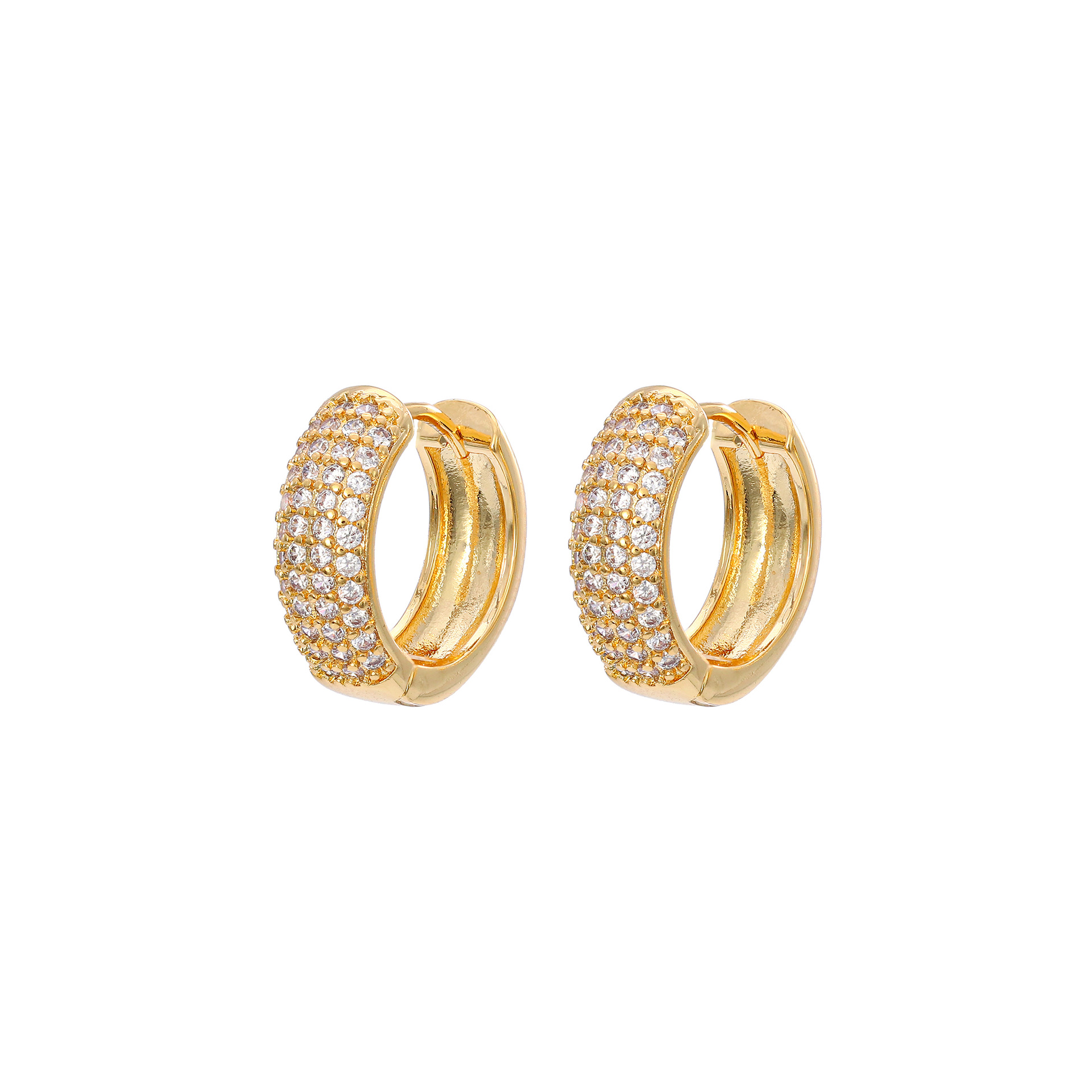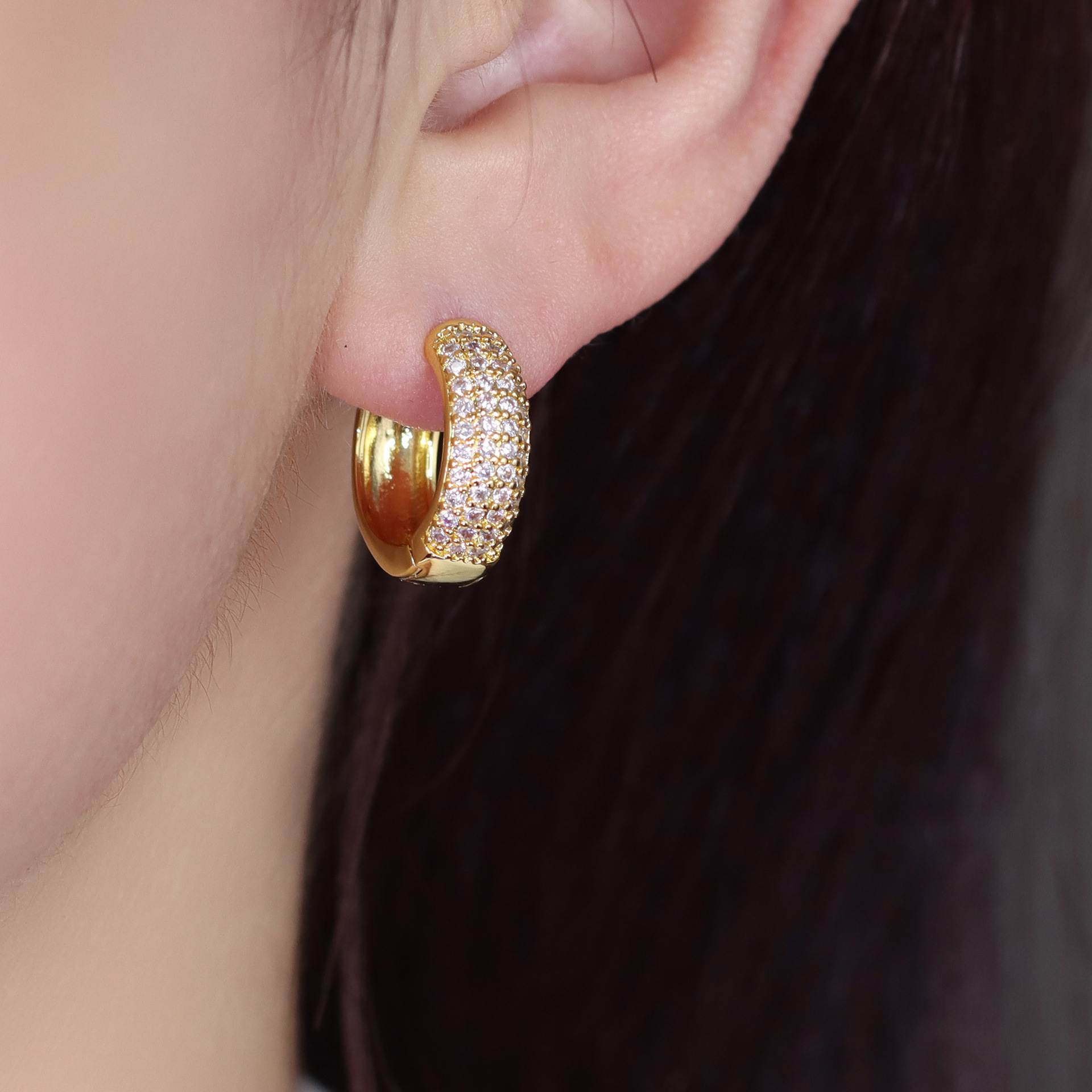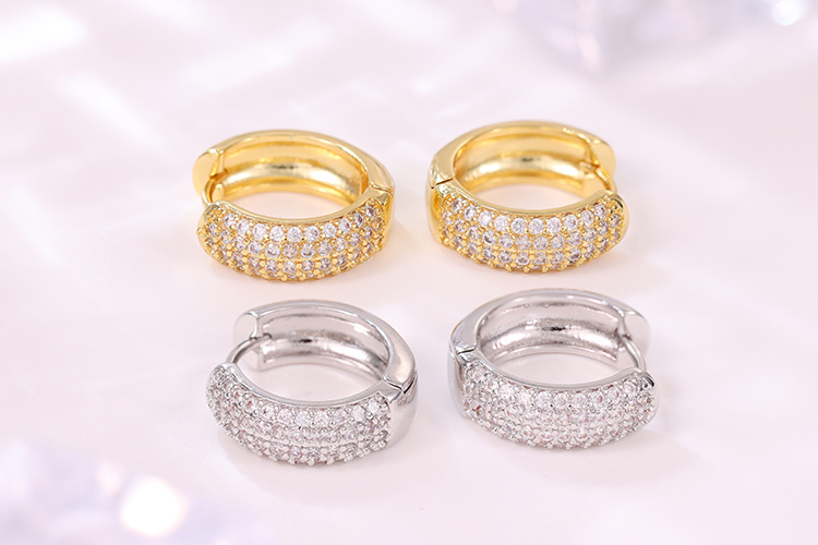 欧美高质量微镶满锆石耳环圆圈跨境时尚经典百搭镀金耳扣耳饰品女