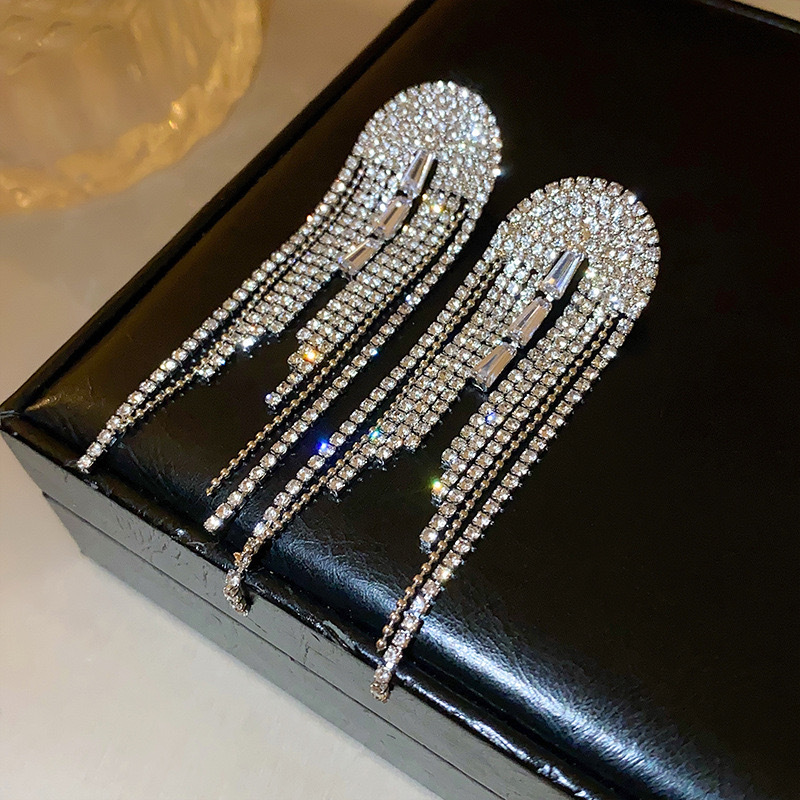 高级感大气直播跨境网红气质耳环欧美时尚夸张水钻长款流苏耳饰女