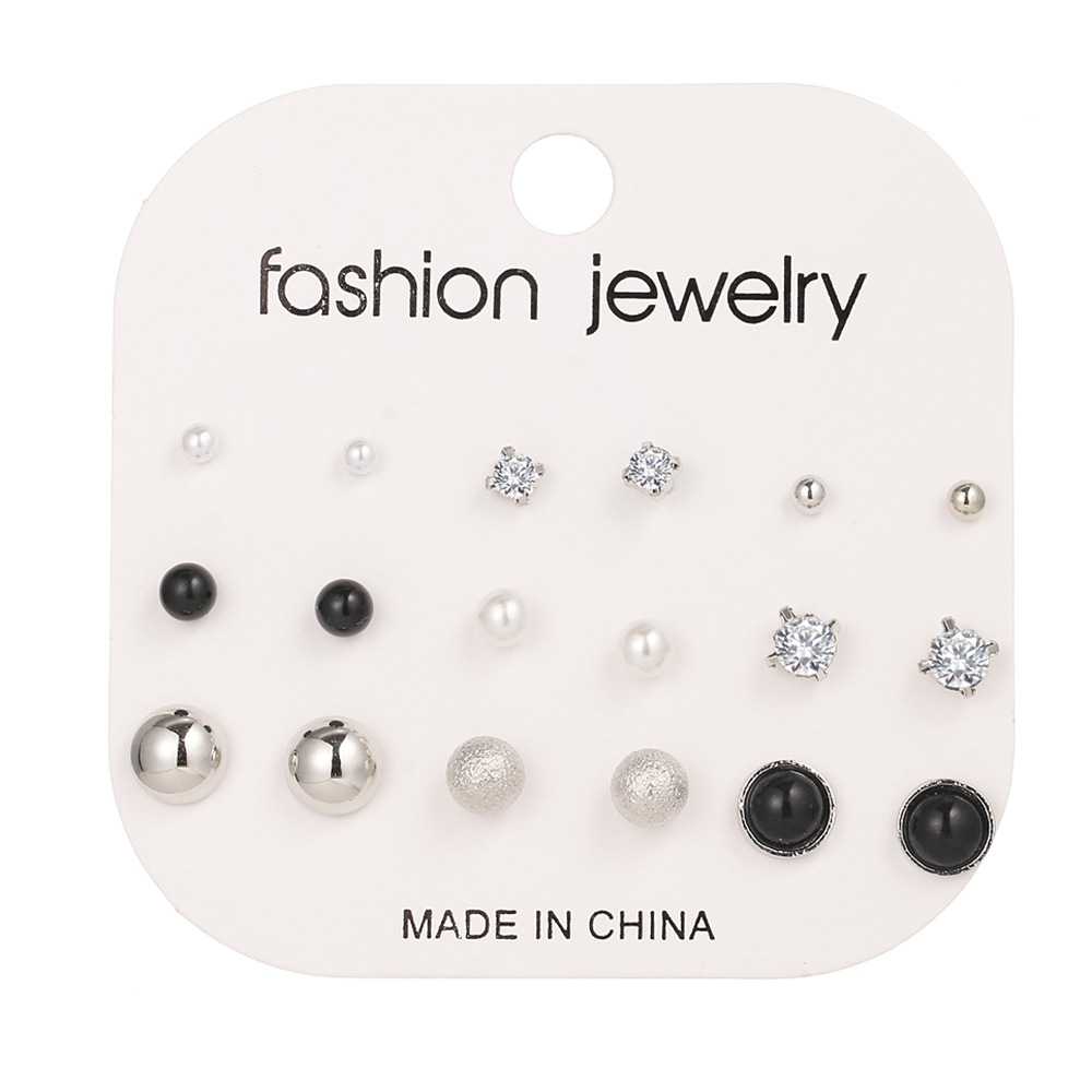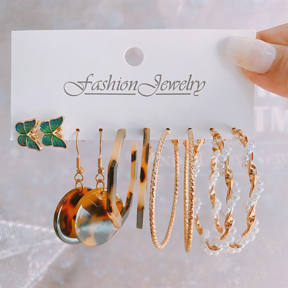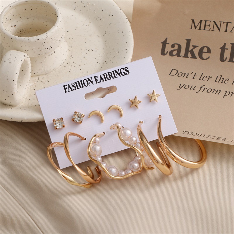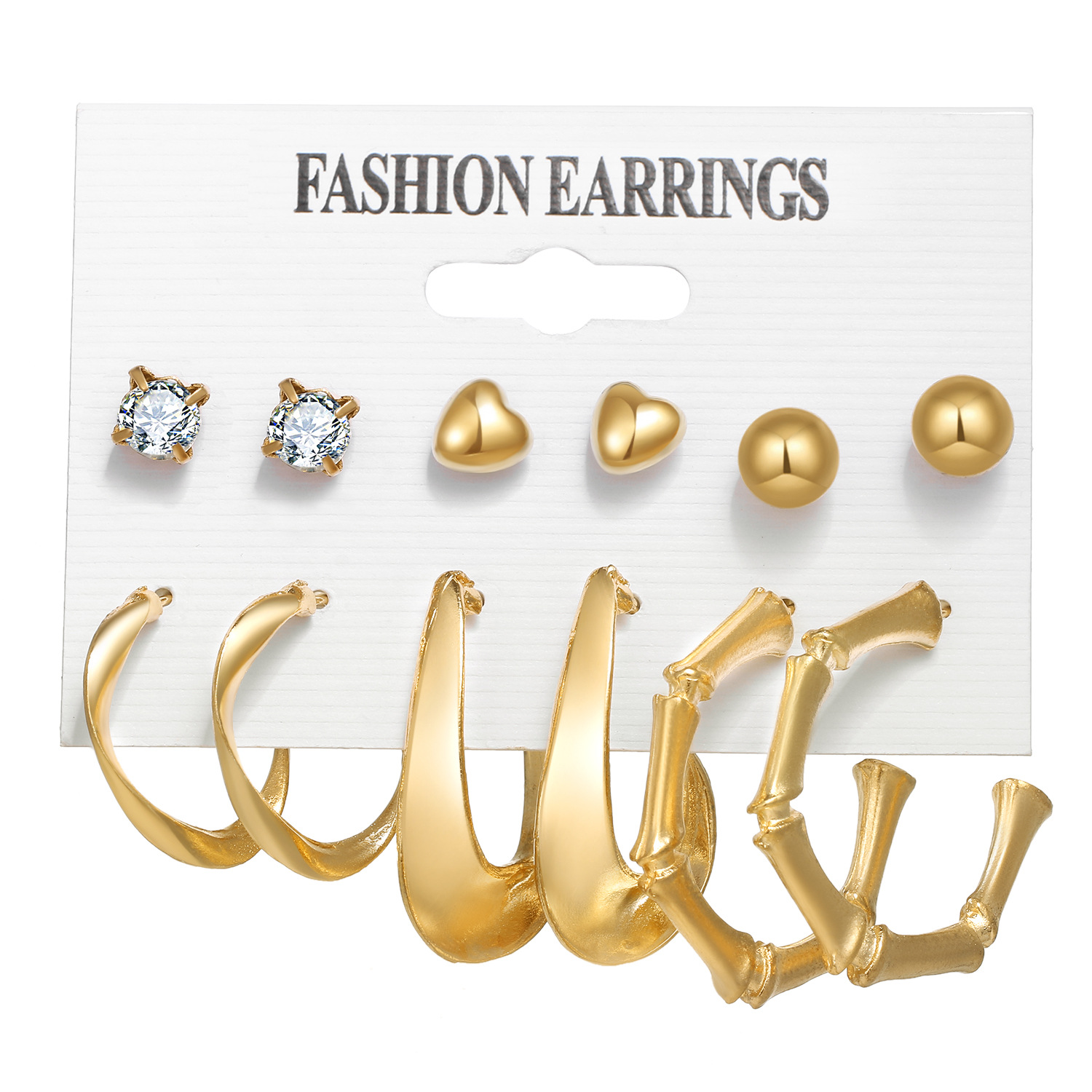 欧美跨境新款金属朋克耳环套装女 复古小众高级几何饰品6件套批发