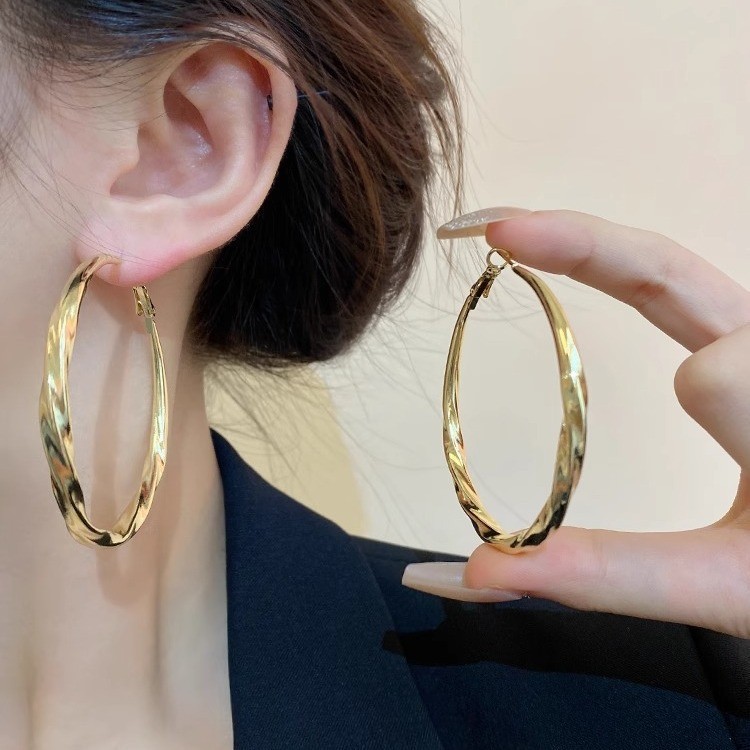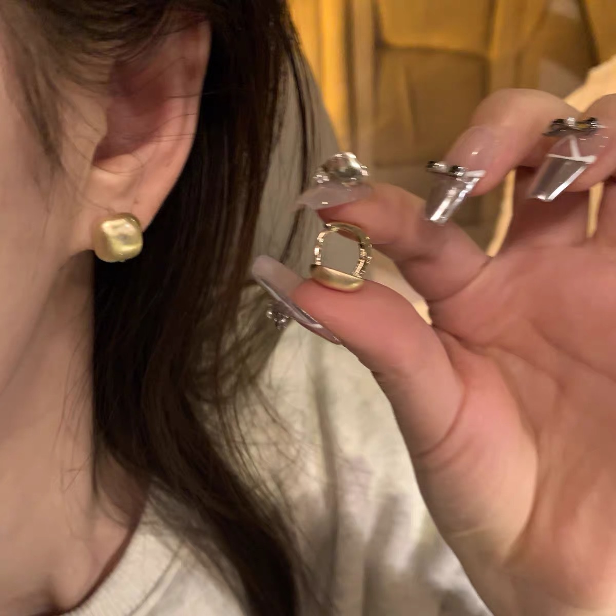 高街范!欧美个性冷淡风简约金属耳环复古高级时尚气质感圆形耳饰