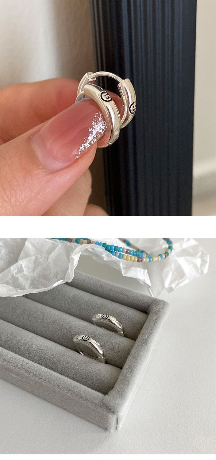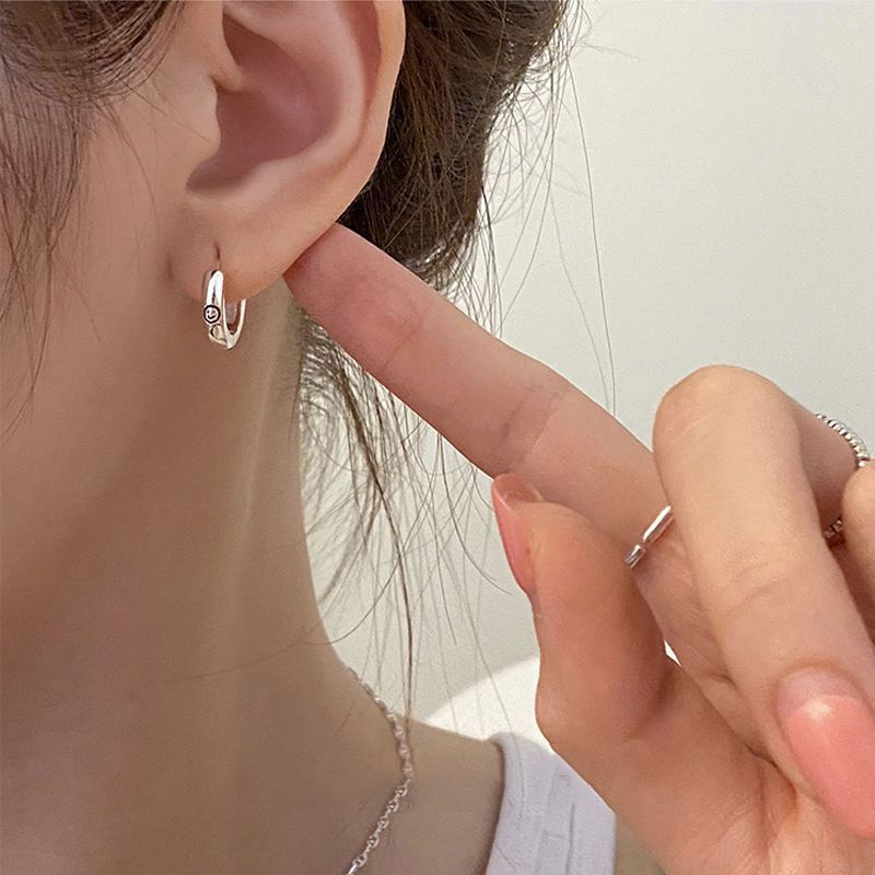 轻奢小众设计感纯银笑脸耳圈2024年新款潮简约轻奢冷淡风ins耳环