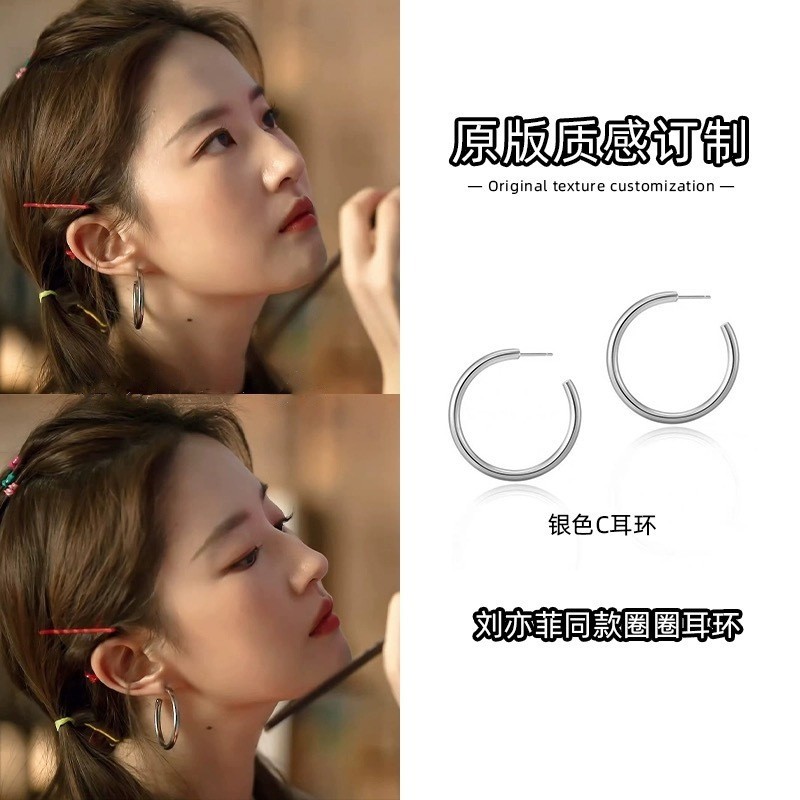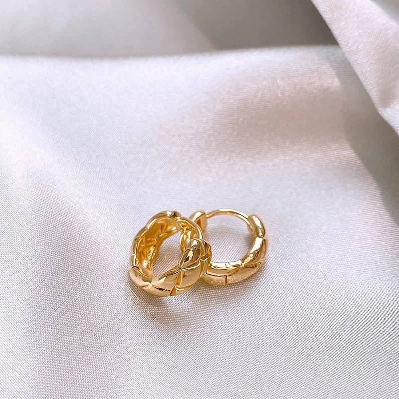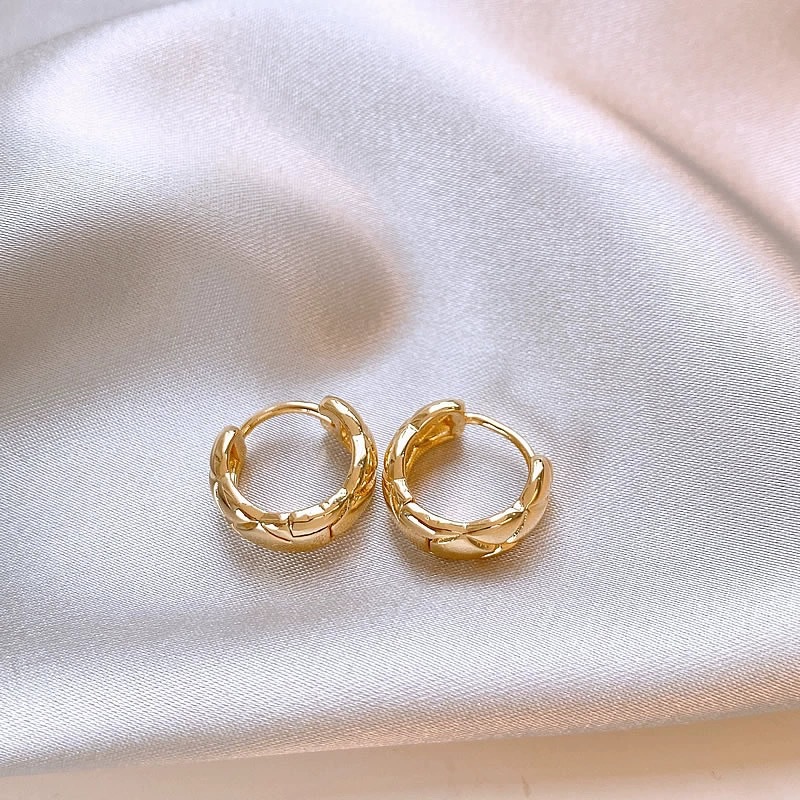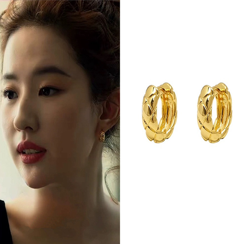 玫瑰的故事黄亦玫刘亦菲同款金色圈圈菱格纹耳环女冷淡风百搭耳饰