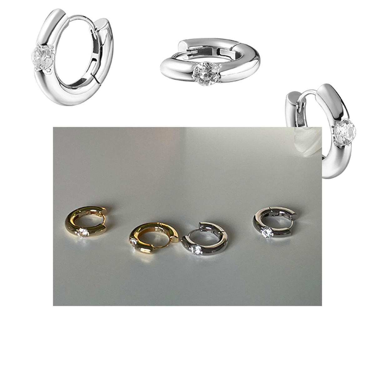 925银针素圈耳环女精致小众百搭锆石耳圈高级感气质新款夏季耳饰