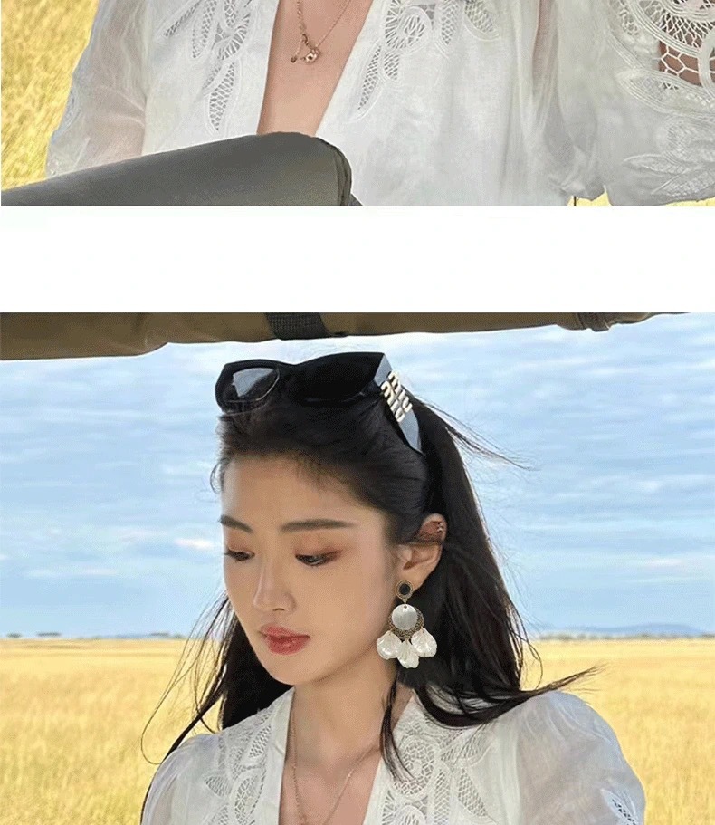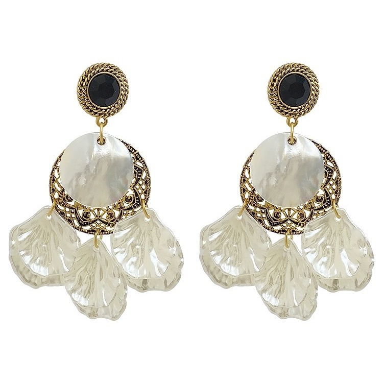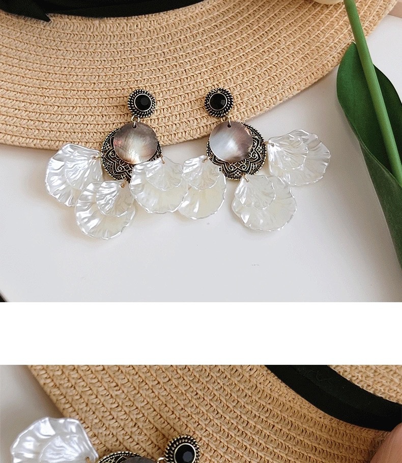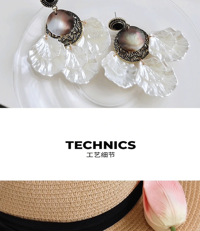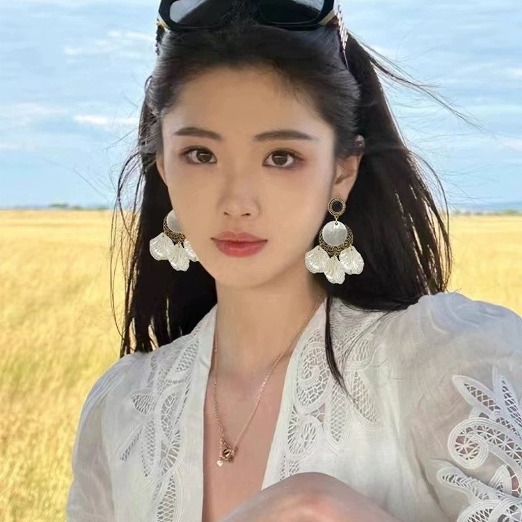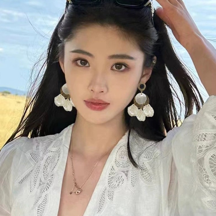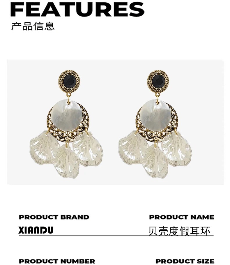 春夏夸张贝壳法式复古巴洛克花瓣气质耳环长款度假风个性轻奢耳饰