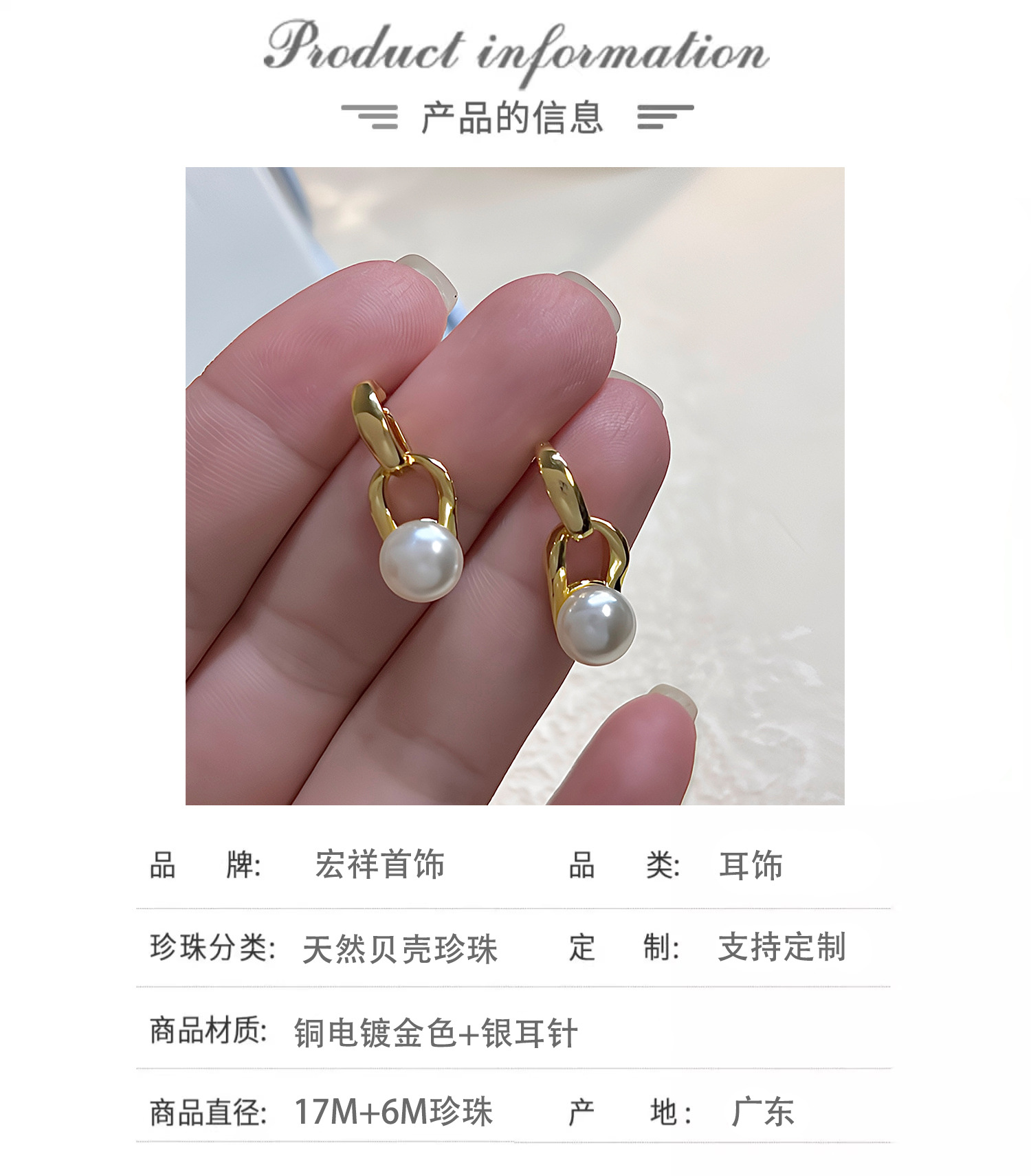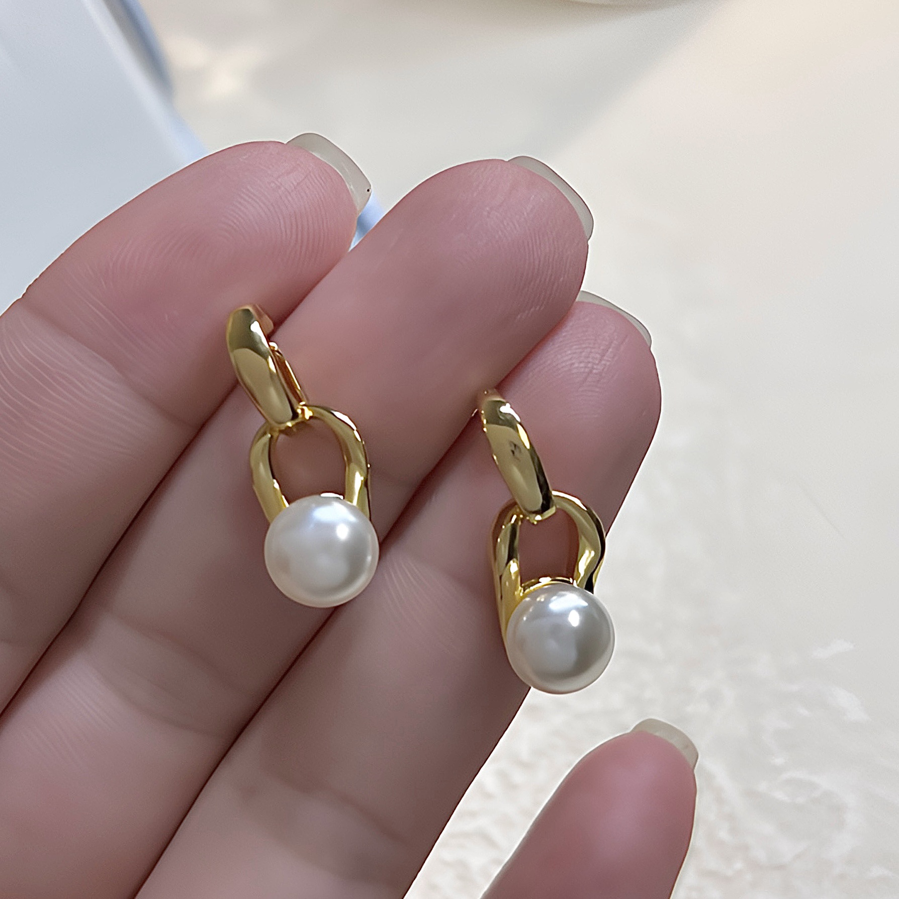 独特双扣设计珍珠耳环女新款时尚个性夏季高级感不过敏防掉色耳饰