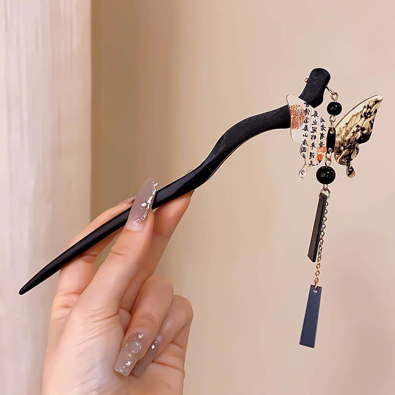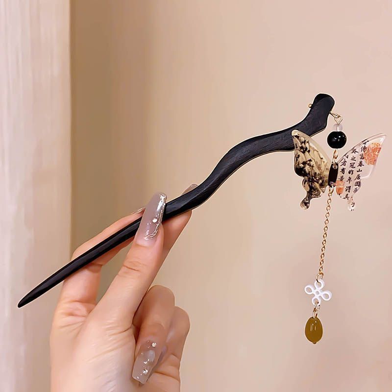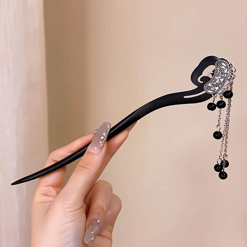 2024新款玉兰花木质发簪简约盘发头饰铃兰花复古旗袍配饰流苏汉服