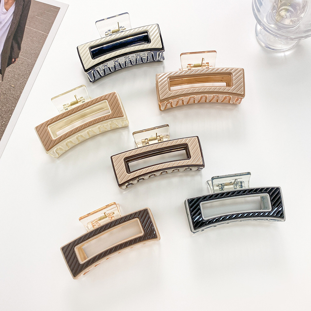 中号方形抓夹优雅发夹发饰高级感头饰后脑勺盘发夹条纹发抓跨境
