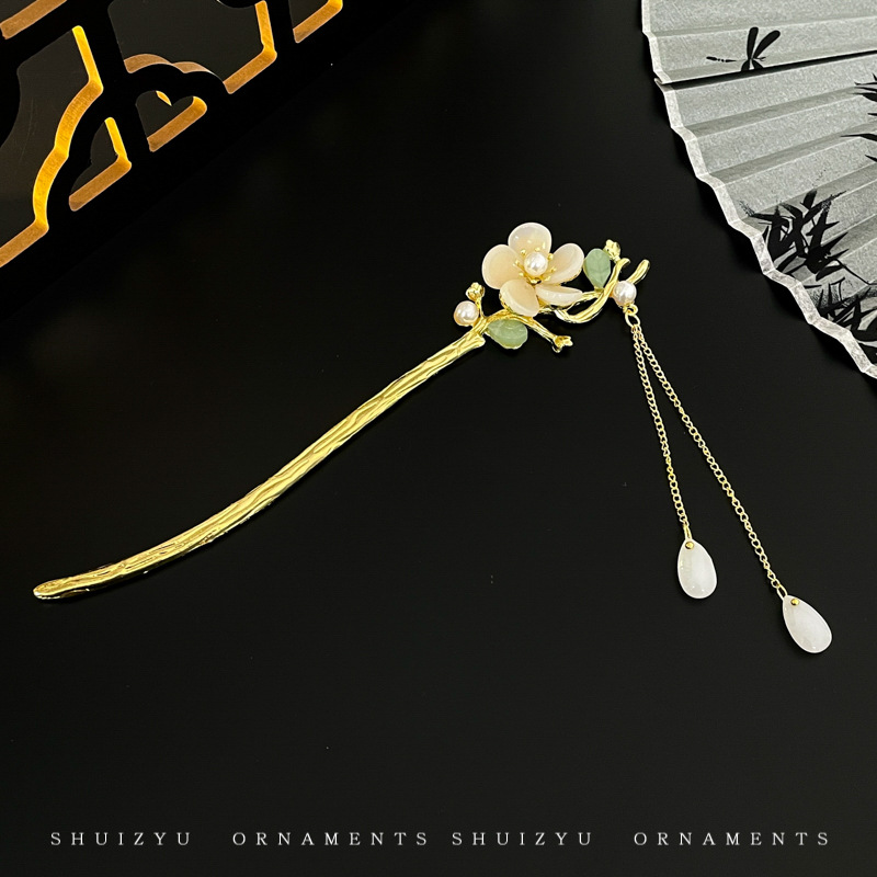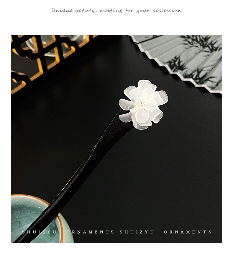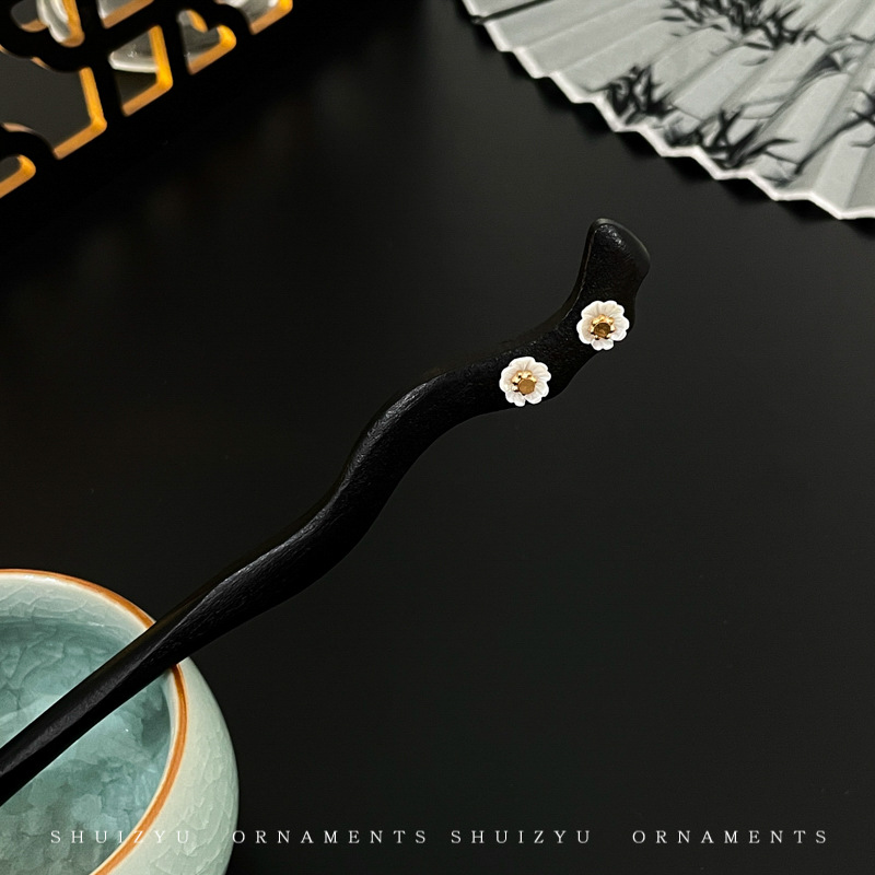 花朵发簪女新中式设计感日常盘发木簪古风发钗后脑勺簪子现代钗子