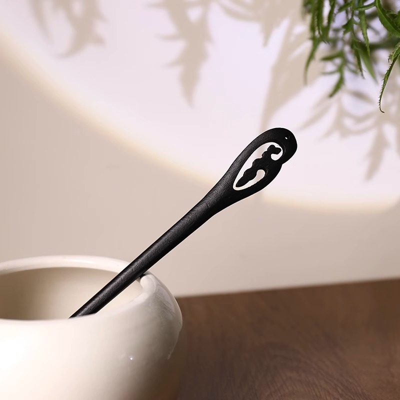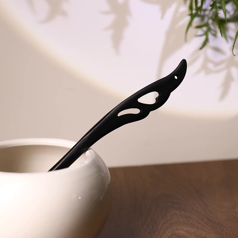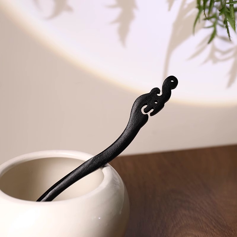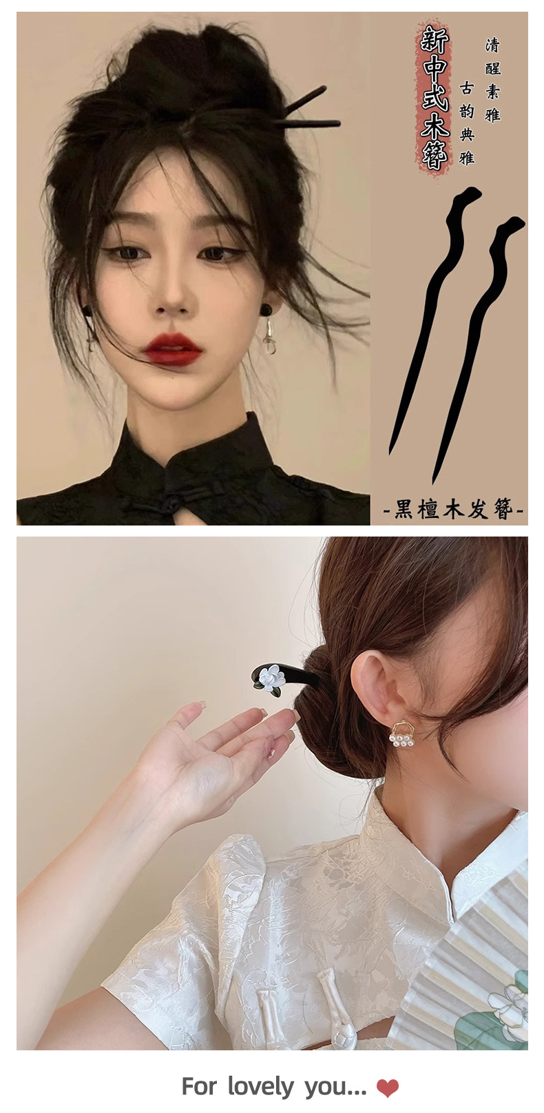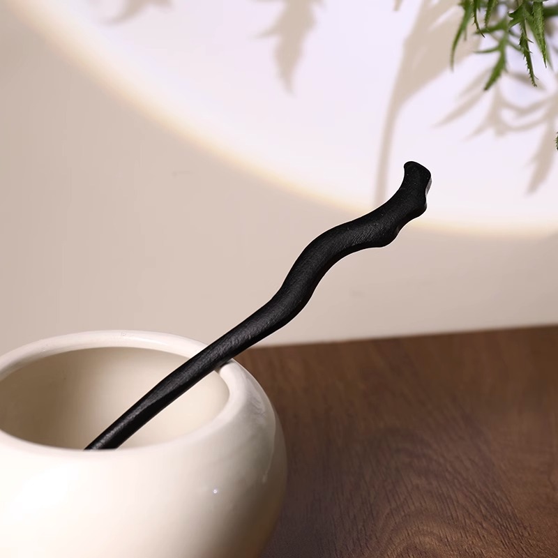 黑色檀木发簪新中式高级感古风木质发钗简约现代发张簪子汉服头饰