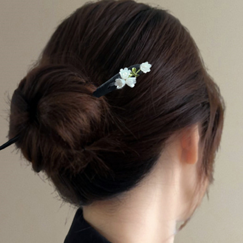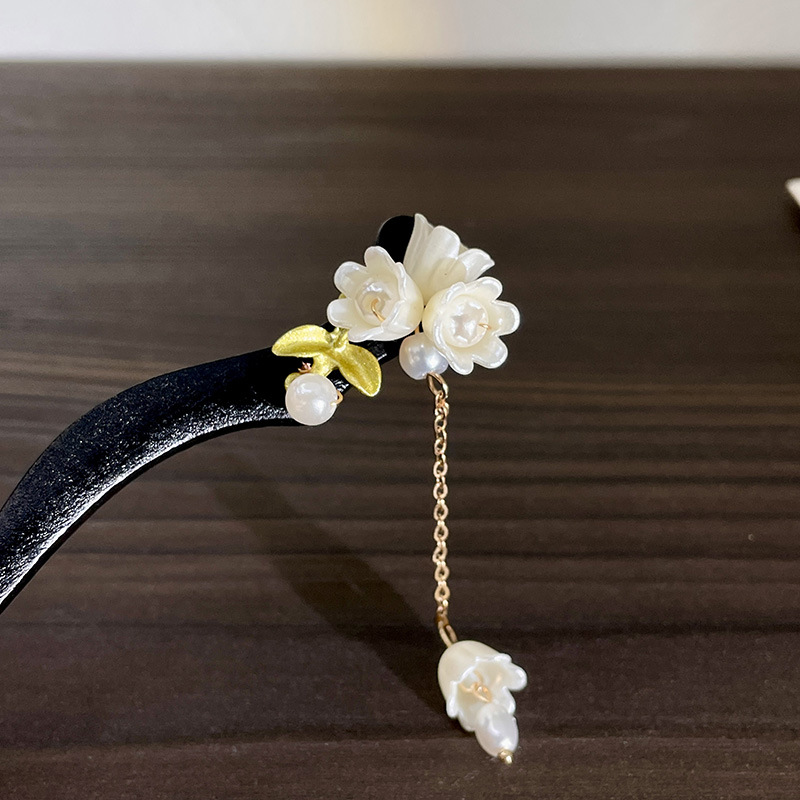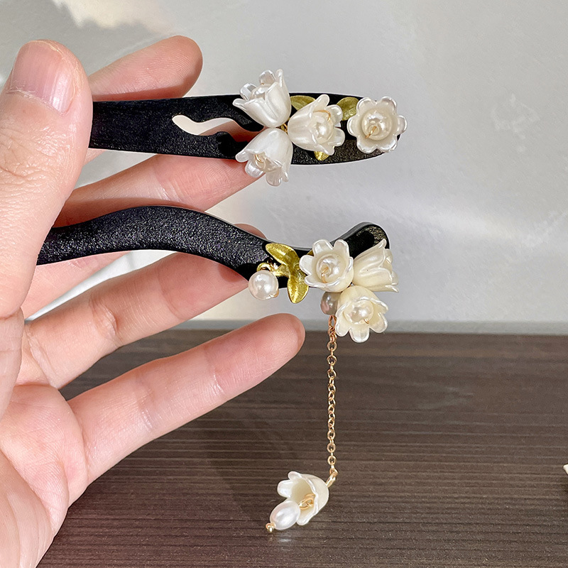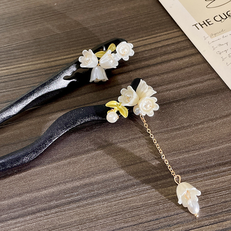 新中式铃兰花木簪清冷感簪子黑檀木发簪女高级感气质盘发简约发钗