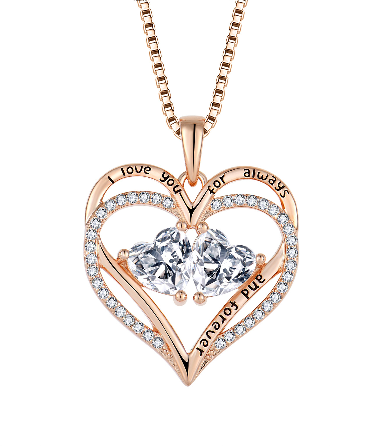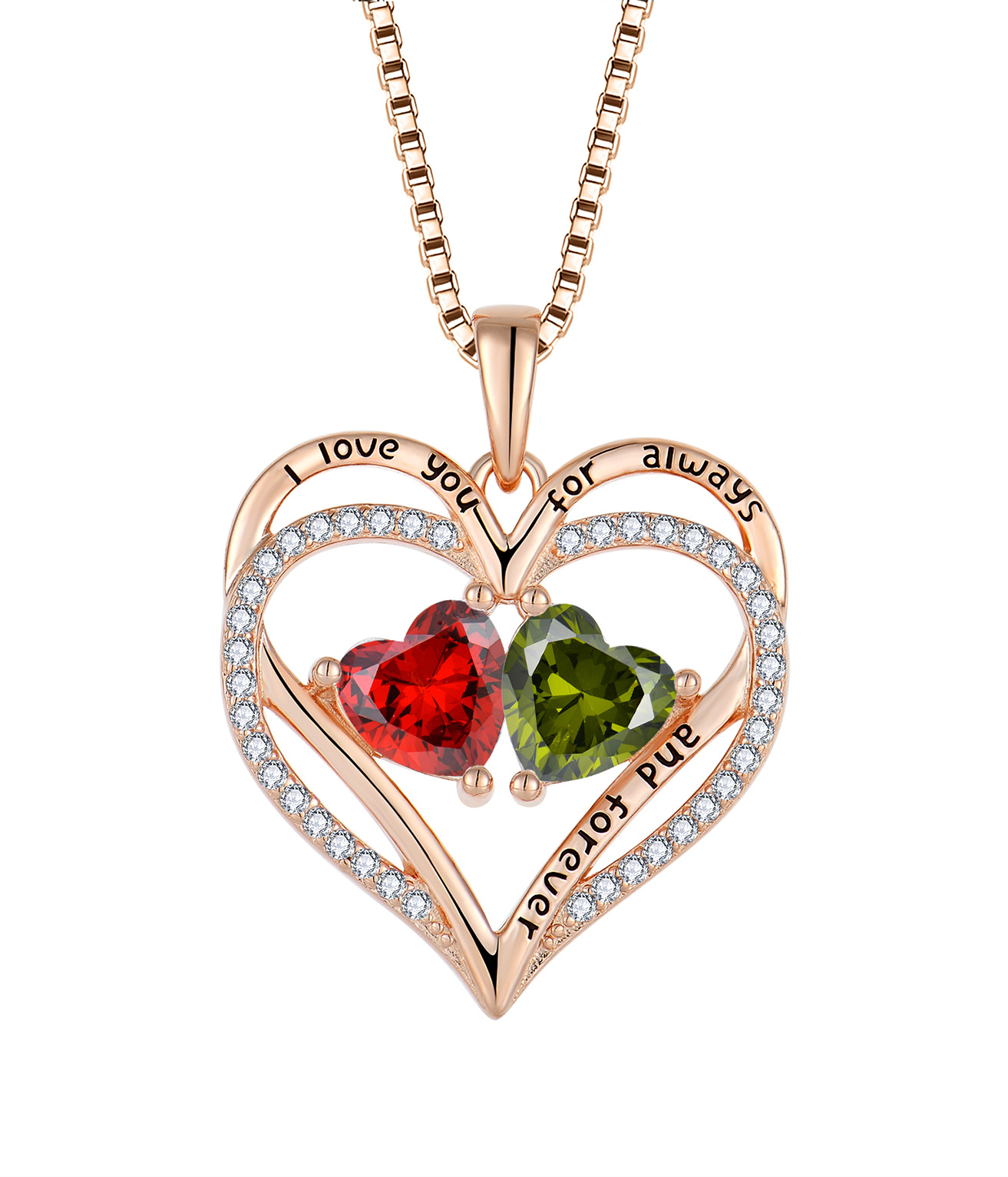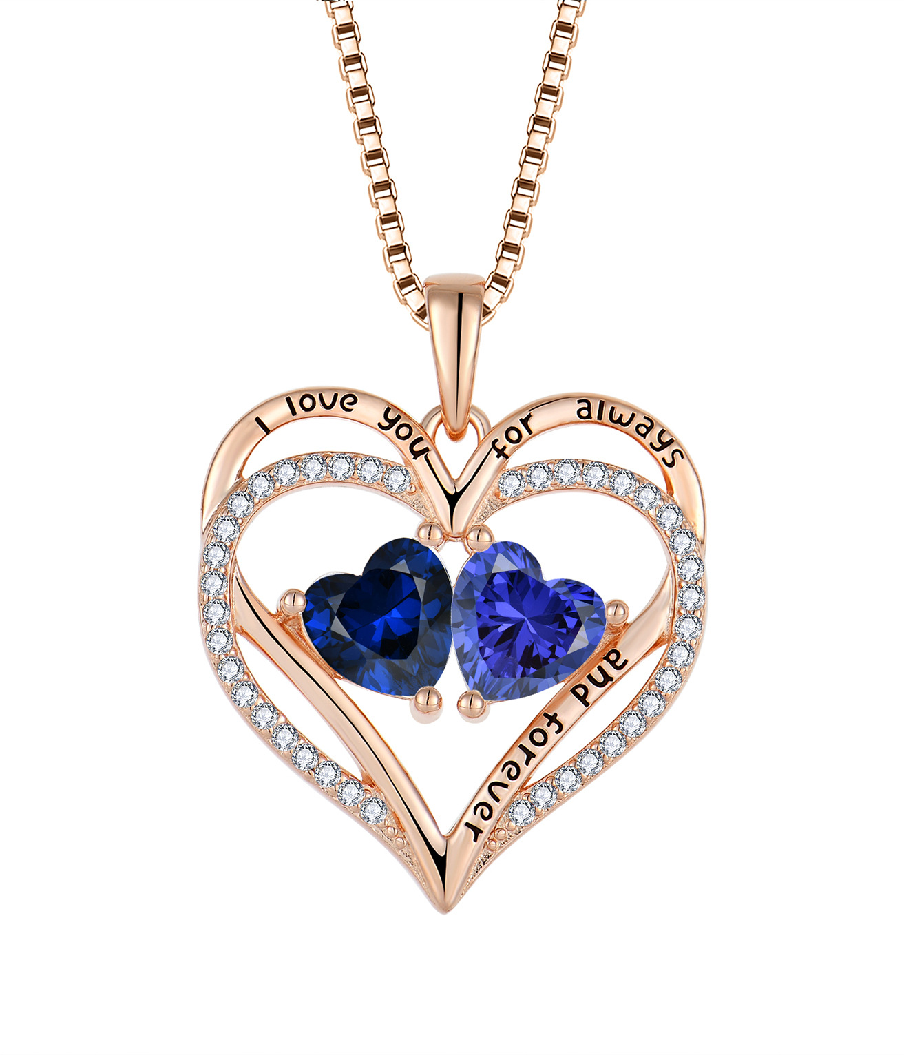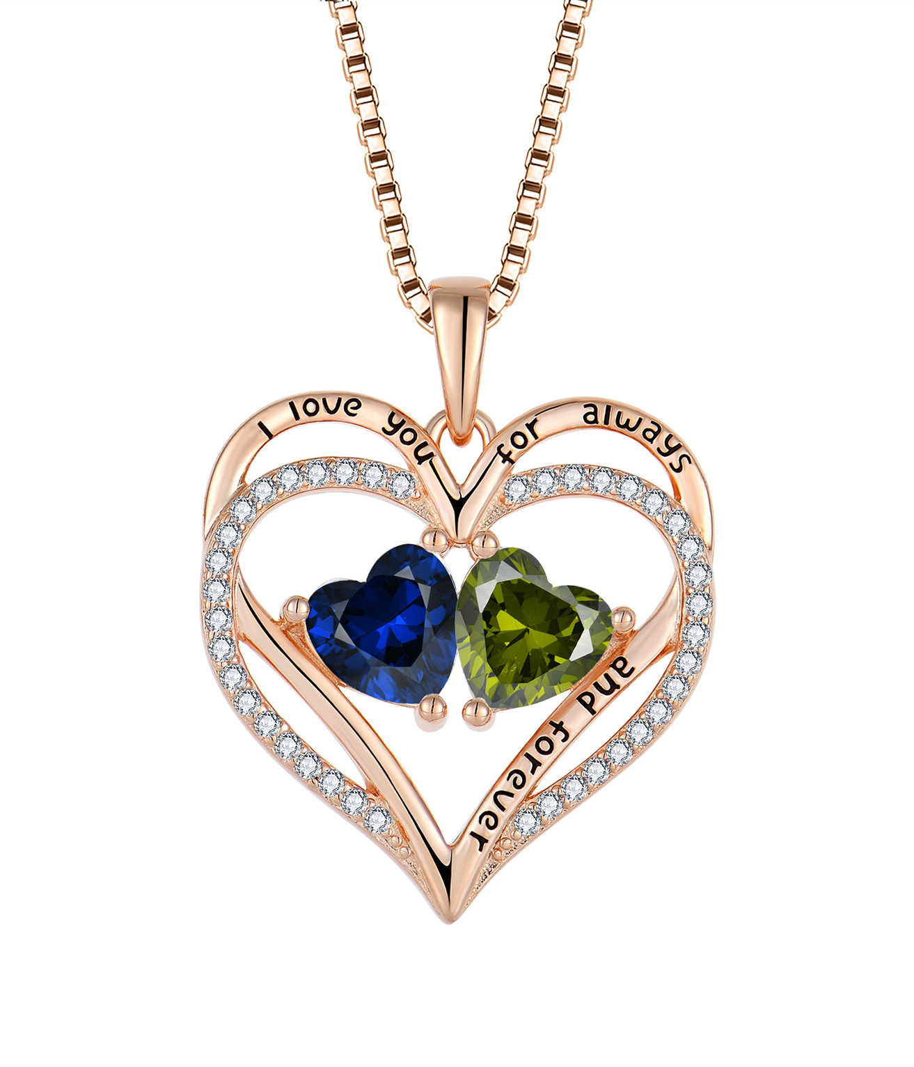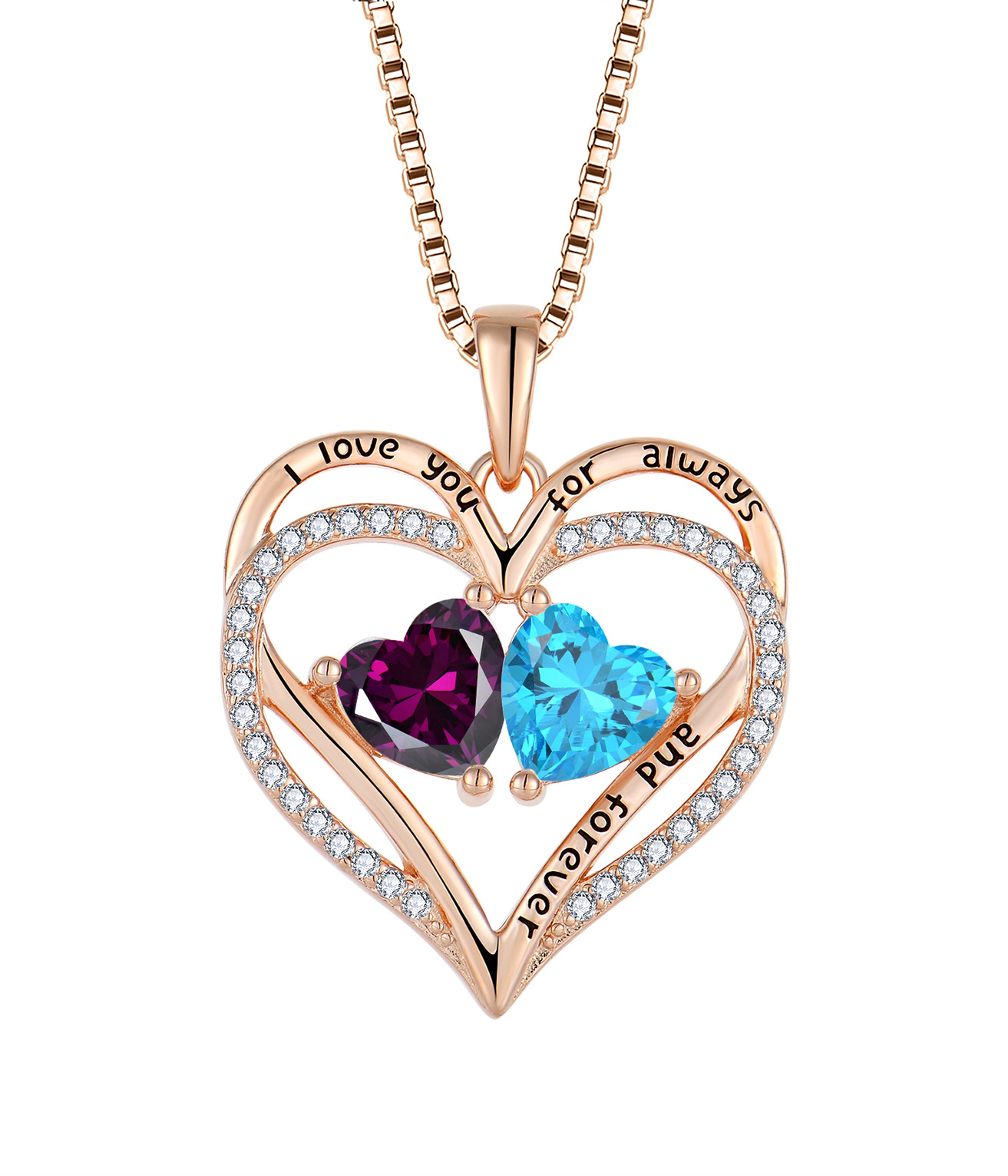 跨境热采镶钻爱心项链女轻奢玫瑰金十二生辰石心形吊坠项饰首饰