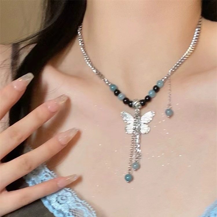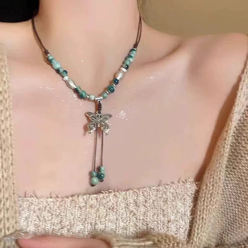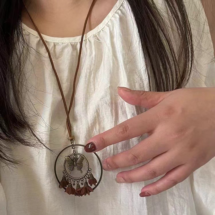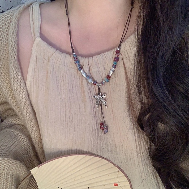 新中式国风复古陶瓷蝴蝶铃铛吊坠项链新款民族风衣长款项链配饰品