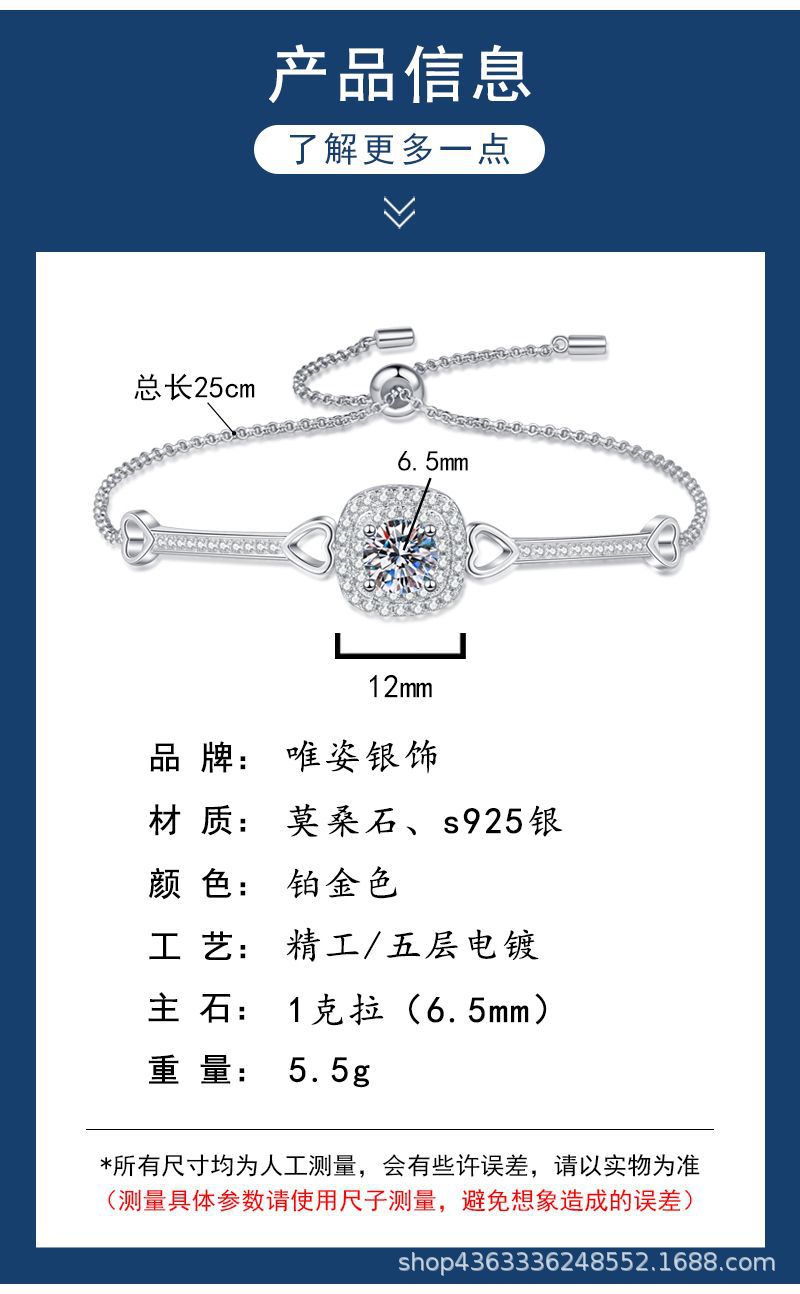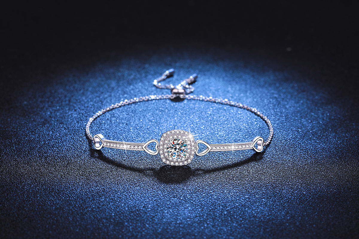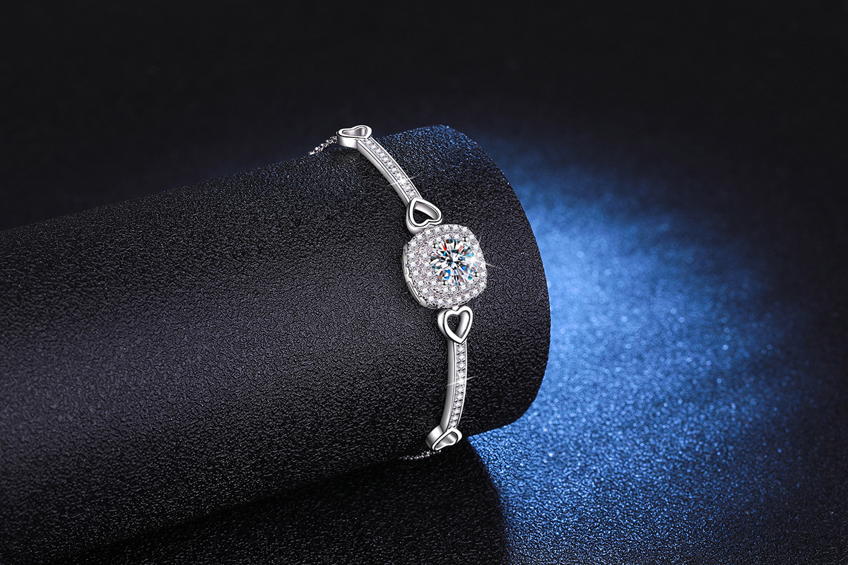 欧美跨境925纯银手链女莫桑手镯女豪华方包高级感1克拉莫桑石手链