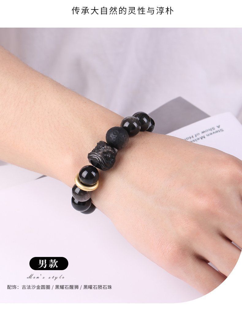 黑曜石醒狮手串银曜石陨石情人节礼物本命年兔年好运珠手链批发