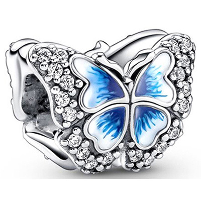 跨境专供泰银工艺白铜镀925银动漫卡通系列蝴蝶花滴胶串珠diy饰品