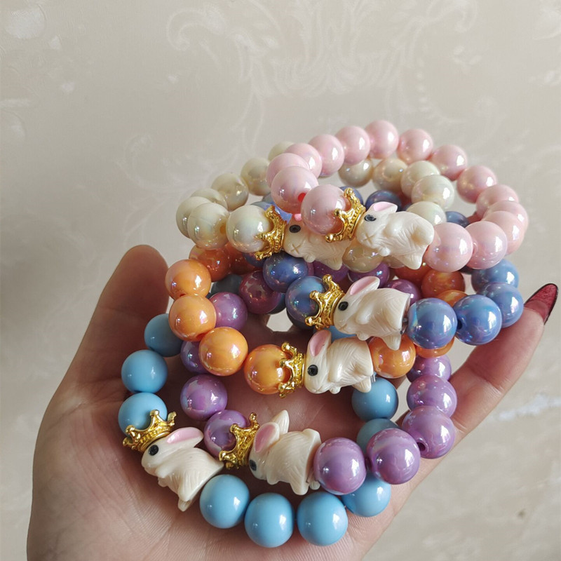 crown rabbit iced glass bracelet(皇冠兔子冰透玻璃手链) USD $0.39 1454 piece available