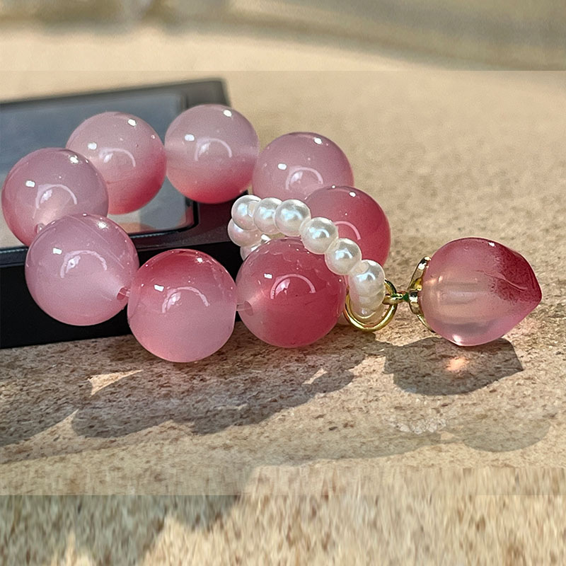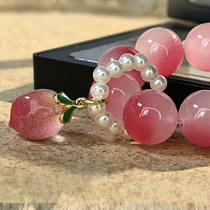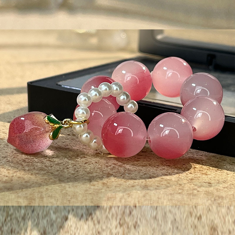 十里桃花粉色手串小手捻手持手绕指柔女桃子吊坠小众迷你设计礼物