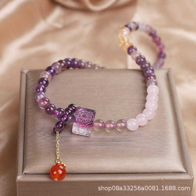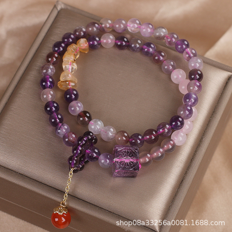 设计款九紫离火手串新中式天然紫水晶时尚跑环双圈手链国风手饰品