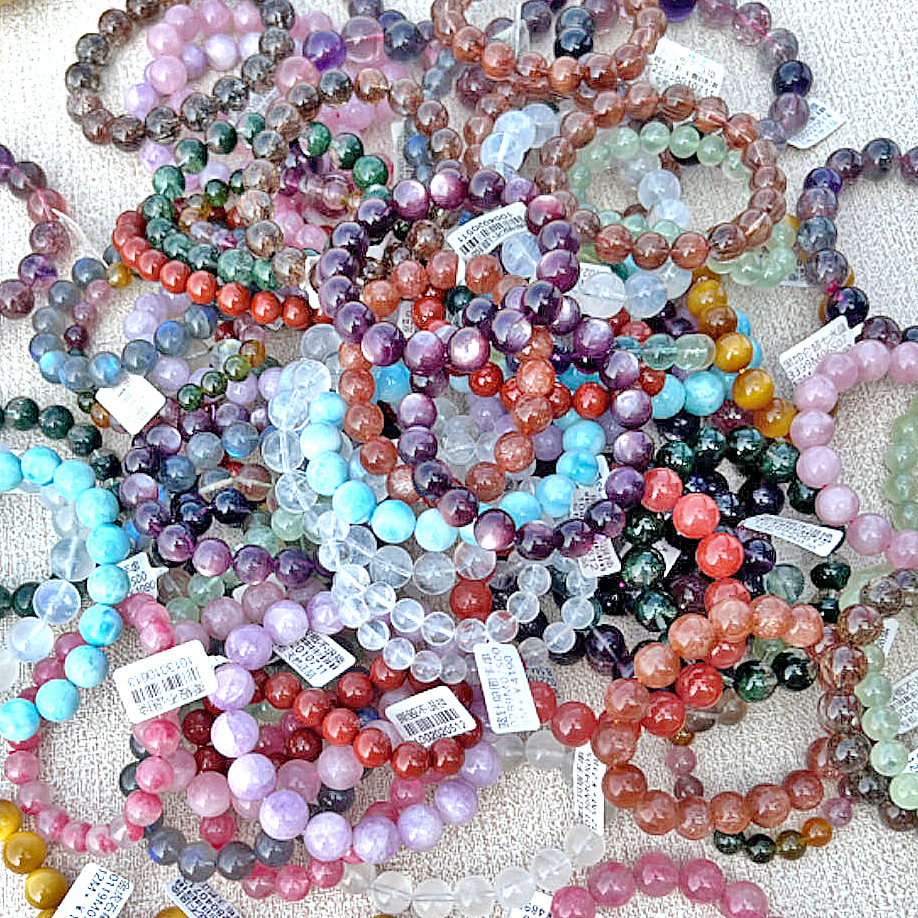 诗天然水晶彩宝手串 直播间拍高货超七发晶绿幽灵海蓝宝碧玺批发